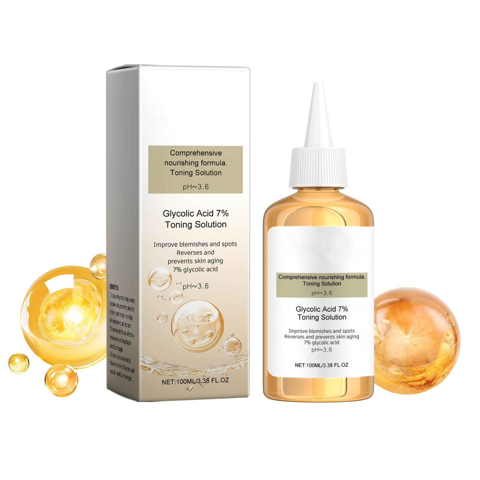 " ?? Name: Glycolic Acid 7% Toning Solution ?? Quantity: 1PCS ?? Net Content: 100ml ?? This hydrating face toner helps you achieve a cleaning effect and restore your skin's smoothness. It is gentle on your skin and widely used by many crowds. Use it daily to refresh and your face. ?? Effect: - Hydrating & Moisturizing - Reduce Acne & Redness - Repair Damage Skin - Prevent Skin Aging - Control Skin Water Oil Balance ?? Features: 1. Glycolic acid 7% toning solution long-lasting moisturizing, creating hydrated skin, penetrating deep into the skin's bottom layer, improving skin transparency and hydration. 2.Gentle hydrating toner can nourish the skin, effectively remove acne, and keep the skin smooth and supple. 3. Glycolic acid toner can improve skin elasticity, fade acne marks and fine lines, and keep skin youthful and energetic. ?? Easy To Use: Step 1: Clean and dry facial skin Step 2: Take an appropriate amount of this product and apply it evenly on the face Step 3: Gently massage until absorbed ?? Tips: ? 1. Do not apply to injured or swollen skin areas. ? 2. For external use only, avoid getting into eyes, if in contact, please wash with water. " SAFETY WARNING NO???Suitable for All Skin Types? Whether you have dry, oily, mixed, or mature skin, our solution is mildly exfoliating and soothing, glycolic acid 7% toning solution moisturizes and strengthens the skin barrier, suitable for all skin types. ???Minimize Pores & Prevent Aging?Glycolic acid product contains plant extracts, can astringe pores. The 7% glycolic acid concentration in this formula promotes skin cell turnover, aiding in the renewal process and revealing fresher, younger-looking skin. Giving your skin a smoother and more refined texture!. ???Balanced Skin?Our glycolic acid 7% toning resurfacing solution helps you to clean your face and remove excess oil and cutin, making your skin smooth. Toning Resurfacing Solution improves blemishes and acne, gently rejuvenates skin, evens skin tone, and provides a smooth and soft texture. ???Moisturizing and Hydrating?This face moisturizer toner not only moisturizes and hydrates your skin, but also restores its smoothness and elasticity. Gentle & hydrating toner by nourishing your skin with natural ingredients, it improves its repair ability. ???Glycolic Acid 7% Toning Solution?This glycolic acid toner is designed to improve skin texture and clarity. Facial exfoliation, avoidance skin aging. Moisturize and strengthen skin barrier , improve blemishes and acne, gently remove cutin.