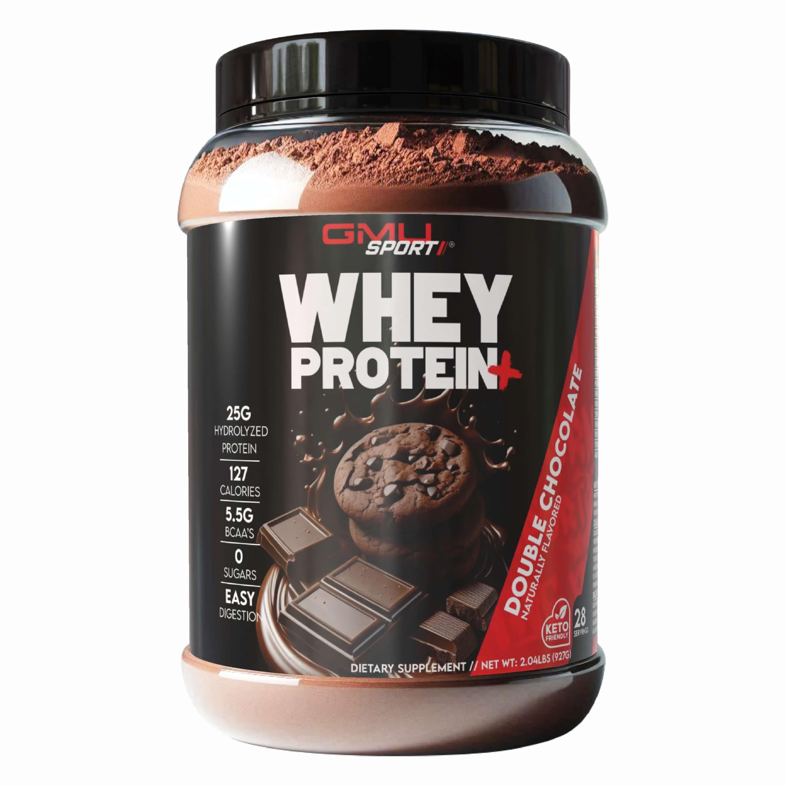 GMU SPORT - Whey Protein+ 28 Servings - No Filler Whey Protein Powder for Women and Men - Low-Calorie Sugar-Free Fast-Absorbing Protein Supplement for Muscle Growth & Recovery Double Chocolate