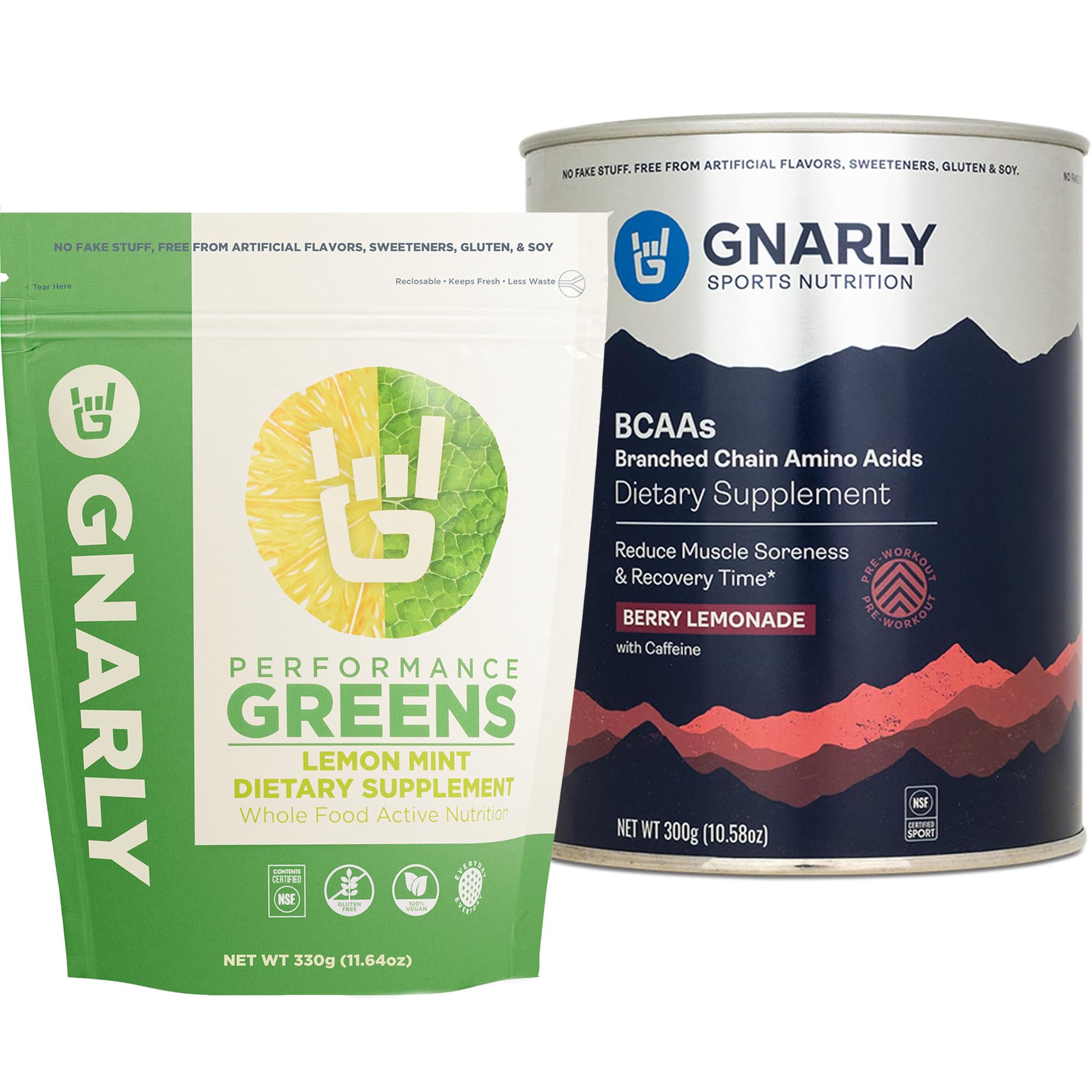 Gnarly Nutrition BCAAs Berry Lemonade (10.58oz) and Gnarly Nutrition Performance Greens Lemon Mint (11.64 oz)