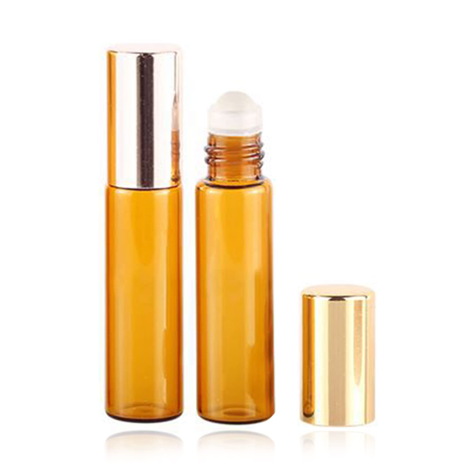 CMJ 2 x 5ml Amber Roll on Glass Bottles Oil Metal Roller Ball Empty BLACK Lid UK Seller