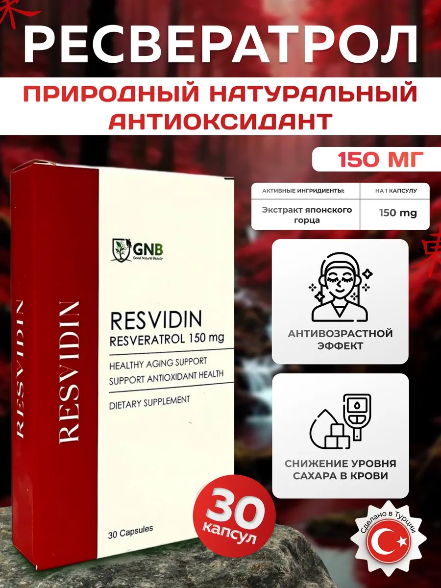Resveratrol 150 mg from GNB Good Natural Beauty is a high-quality dietary supplement made in Turkey that is designed to maintain health and well-being.
