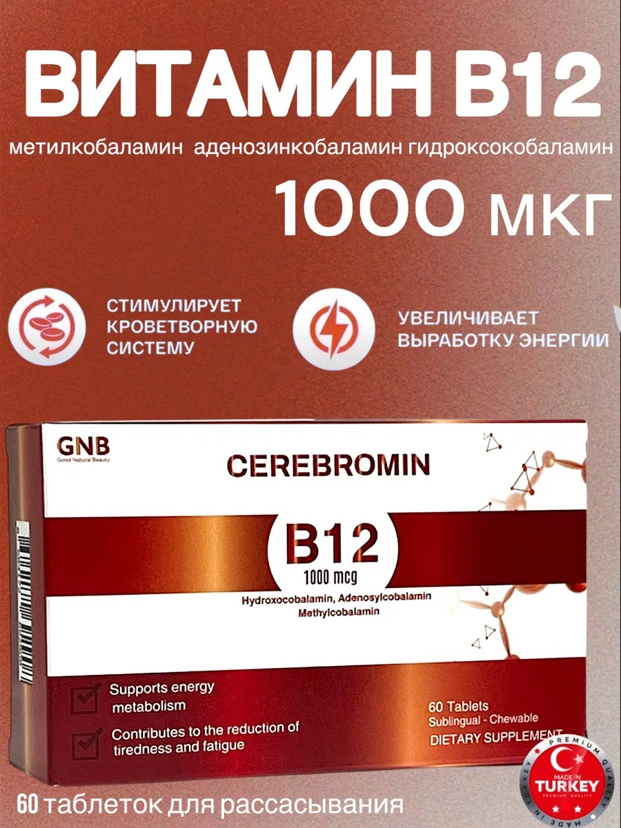 Витамин В12: Аденозилкобаламин, Метилкобаламин, Гидроксикобаламин – 60 рассасывающих таблеток, Турецкое качество для Вашего Здоровья