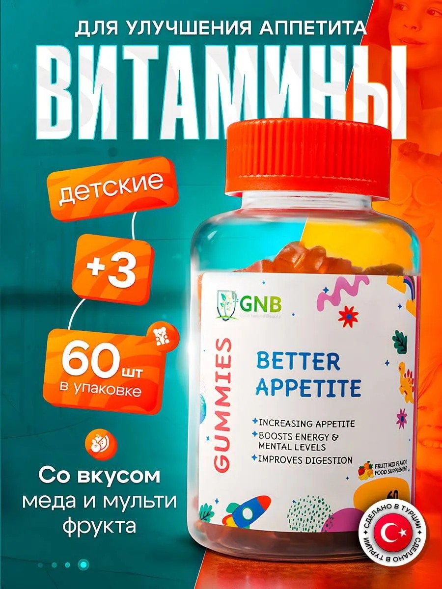 Витамины для детей Better Appetite от турецкого бренда GNB – ключ к здоровому аппетиту вашего малыша! В каждой упаковке – 60 вкусных мармеладок, созданных для улучшения аппетита и общего благополучия вашего малыша.