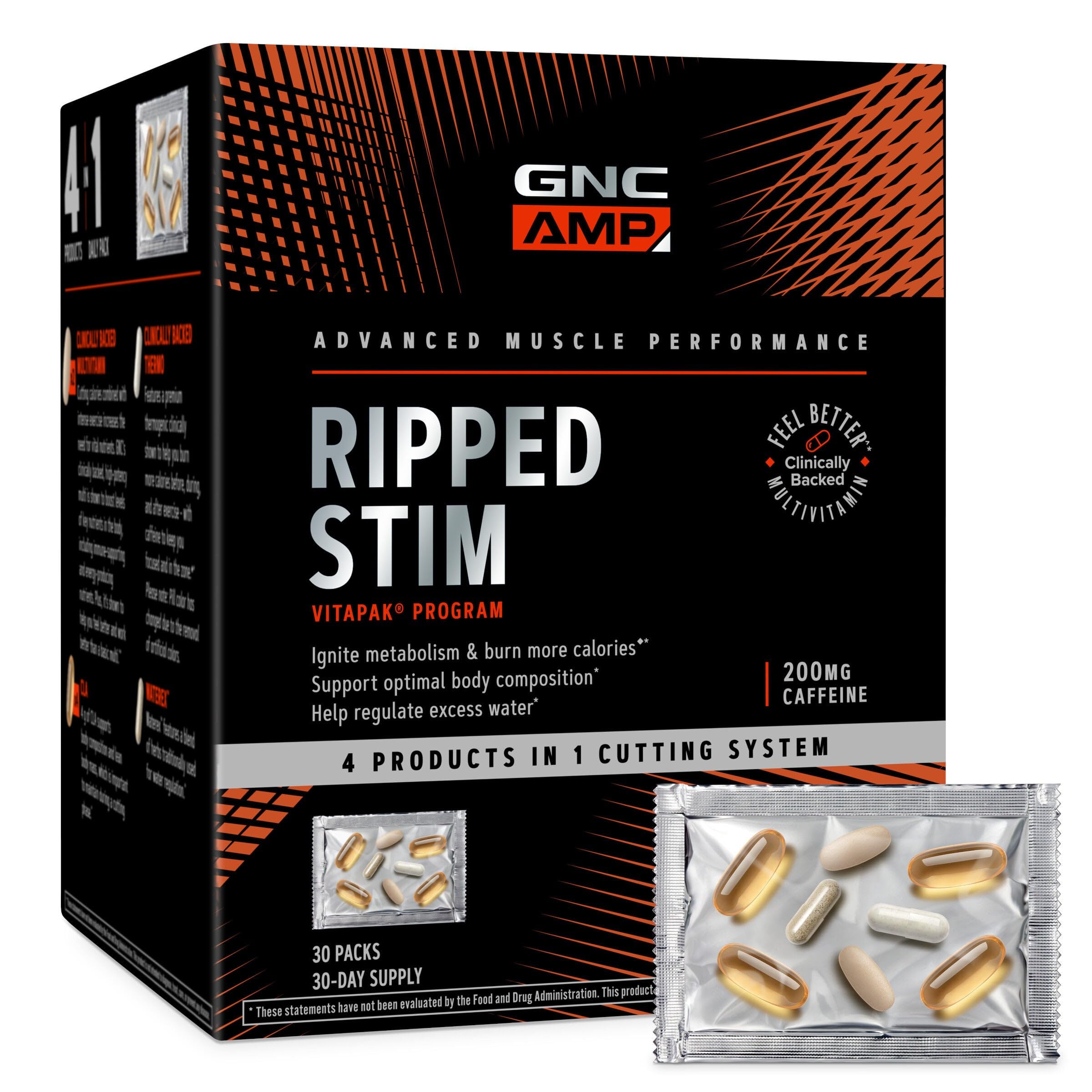 Helps regulate excess water with nature-based Waterex formula. Improve body composition lean muscle tone . Burns up to 12X more calories provides lean muscle support . GNC AMP Ripped Vitapak Program: Multivitamin Blend GNC AMP Ripped Vitapak Program delivers the power of five science-based formulas to help you achieve your daily nutritional goals as you strive for a lean, sculpted physique and dagger. Get the nutritional support active men women need.