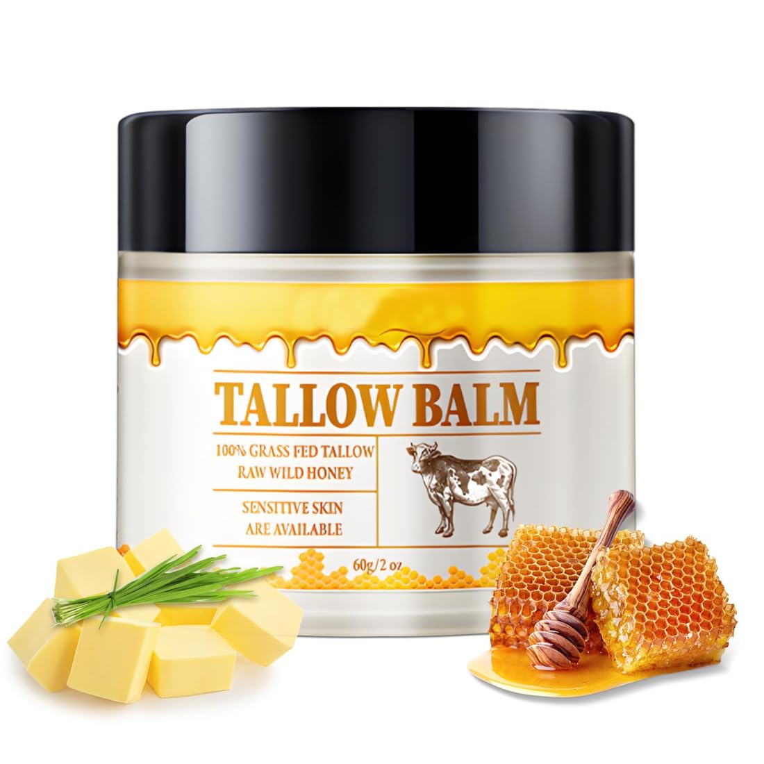 Balm: a nourishing ointment that deeply hydrates and makes the skin supple. Rich in vitamins A, D, K, E and essential fatty acids, it boosts your complexion while strengthening the skin barrier to provide long-lasting protection and a natural, radiant glow. Soothing and relieving sensitive skin: our product is based on bovine tallow, a natural ingredient that is very similar to the skin's natural barrier structure. If you have sensitive skin, this is the ideal ingredient. It helps soothe and relieve irritated skin. Natural and non-irritating: Beef skin care products are made from natural butter and natural honey, the most original substances that do not irritate human skin. At the same time, beef oil skin care products do not leave a greasy feeling on the face, are easily absorbed and do not cause impurities. Skin care products made from beef oil are also suitable for allergy sufferers. Versatile: This multi-functional ointment meets all skin care requirements and is a comprehensive solution for cleansing, moisturizing, skin tone and much more - an important part of any skin care routine. Use: first clean the skin. Apply a generous amount of ointment evenly to the face or body and then gently massage it into the skin using circular movements until completely absorbed.Use: first clean the skin. Apply a generous amount of ointment evenly to the face or body and then gently massage it into the skin using circular movements until completely absorbed. Versatile: This multi-functional ointment meets all skin care requirements and is a comprehensive solution for cleansing, moisturizing, skin tone and much more - an important part of any skin care routine. Natural and non-irritating: Beef skin care products are made from natural butter and natural honey, the most original substances that do not irritate human skin. At the same time, beef oil skin care products do not leave a greasy feeling on the face, are easily absorbed and do not cause impurities. Skin care products made from beef oil are also suitable for allergy sufferers. Soothing and relieving sensitive skin: our product is based on bovine tallow, a natural ingredient that is very similar to the skin's natural barrier structure. If you have sensitive skin, this is the ideal ingredient. It helps soothe and relieve irritated skin. Balm: a nourishing ointment that deeply hydrates and makes the skin supple. Rich in vitamins A, D, K, E and essential fatty acids, it boosts your complexion while strengthening the skin barrier to provide long-lasting protection and a natural, radiant glow.1 stuk verhipped tallow cream, rundertalg voor de huid, rundertalg en honingmelisse, 100 met gras gevoerde pure rundertalg, honing en bijenwas Balsem: een voedende zalf die de huid diep hydrateert en soepel maakt. Rijk aan vitamine A, D, K, E en essentiële vetzuren, stimuleert je teint en versterkt tegelijkertijd de huidbarrière om langdurige bescherming en een natuurlijke, stralende glans te bieden. Kalmering en verlichting van de gevoelige huid: ons product is gebaseerd op rundertalg, een natuurlijk ingrediënt dat zeer lijkt op de natuurlijke barrièrestructuur van de huid. Als je een gevoelige huid hebt, is dit het ideale ingrediënt. Hij helpt geïrriteerde huid te kalmeren en te verlichten. Natuurlijk en niet irriterend: de huidverzorgingsproducten van rundvlees worden gemaakt van natuurlijke boter en natuurlijke honing, de meest originele stoffen die de menselijke huid niet irriteren. Tegelijkertijd laten huidverzorgingsproducten van rundvleesolie geen vettig gevoel achter op het gezicht, trekken gemakkelijk in en veroorzaken geen onzuiverheden. Huidverzorgingsproducten gemaakt van rundvleesolie zijn ook geschikt voor mensen met een allergie. Veelzijdig inzetbaar: deze multifunctionele zalf voldoet aan alle eisen van huidverzorging en is een uitgebreide oplossing voor reiniging, hydratering, huidtint en nog veel meer - een belangrijk onderdeel van elke huidverzorging. Gebruik: reinig eerst de huid. Breng een royale hoeveelheid zalf gelijkmatig aan op het gezicht of lichaam en masseer deze vervolgens zachtjes in de huid met cirkelvormige bewegingen tot deze volledig is opgenomen.Gebruik: reinig eerst de huid. Breng een royale hoeveelheid zalf gelijkmatig aan op het gezicht of lichaam en masseer deze vervolgens zachtjes in de huid met cirkelvormige bewegingen tot deze volledig is opgenomen. Veelzijdig inzetbaar: deze multifunctionele zalf voldoet aan alle eisen van huidverzorging en is een uitgebreide oplossing voor reiniging, hydratering, huidtint en nog veel meer - een belangrijk onderdeel van elke huidverzorging. Natuurlijk en niet irriterend: de huidverzorgingsproducten van rundvlees worden gemaakt van natuurlijke boter en natuurlijke honing, de meest originele stoffen die de menselijke huid niet irriteren. Tegelijkertijd laten huidverzorgingsproducten van rundvleesolie geen vettig gevoel achter op het gezicht, trekken gemakkelijk in en veroorzaken geen onzuiverheden. Huidverzorgingsproducten gemaakt van rundvleesolie zijn ook geschikt voor mensen met een allergie. Kalmering en verlichting van de gevoelige huid: ons product is gebaseerd op rundertalg, een natuurlijk ingrediënt dat zeer lijkt op de natuurlijke barrièrestructuur van de huid. Als je een gevoelige huid hebt, is dit het ideale ingrediënt. Hij helpt geïrriteerde huid te kalmeren en te verlichten. Balsem: een voedende zalf die de huid diep hydrateert en soepel maakt. Rijk aan vitamine A, D, K, E en essentiële vetzuren, stimuleert je teint en versterkt tegelijkertijd de huidbarrière om langdurige bescherming en een natuurlijke, stralende glans te bieden.