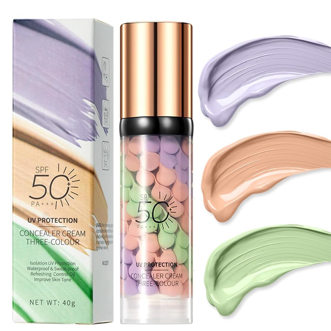 Skin color correction: facial primer has color correction, brightening and smoothing effect. The unique spiral blend formula contains three color-rejuvenating pigments: light purple to improve skin yellow discoloration, green to neutralize skin redness and pink to retouch dark circles and lighten puffiness and dimples. Insulation and protection: This color correcting primer has a broadband protection factor up to SPF50 and protects the skin against UV damage. It not only resists UV damage, but also forms a physical protective film that effectively isolates dust and harmful substances in the air and protects the skin from the external environment. Moisturizing and Oil Control: The formula contains rich moisturizing essences that deeply hydrate the skin, effectively control oil secretion and make makeup last longer. Lightweight and Natural Finish: The light and smooth texture applies easily and evenly to the skin without weighing you down, leaving you feeling refreshed and non-sticky all day long. Simply squeeze out a small amount and apply gently to cleansed skin. Invisible pores and fine lines: The eye primer consists of a variety of gentle ingredients that make it safe and non-irritating. It effectively covers and reduces enlarged pores, acne marks, fine lines and wrinkles, leaving the skin soft and smooth.Invisible Pores and Fine Lines: The eye primer is made from a variety of gentle ingredients that make it safe and non-irritating. It effectively covers and reduces enlarged pores, acne marks, fine lines and wrinkles and leaves the skin soft and smooth. It can also help to correct dull skin tone, redness and blemishes, improve skin radiance and create a flawless finish. Lightweight and Natural Finish: The light and smooth texture applies easily and evenly to the skin without causing any discomfort, leaving you feeling refreshed and non-sticky all day long. Simply squeeze out a small amount and apply gently to cleansed skin. After application, the skin looks hydrated and radiant, without exaggerating the original skin color. Moisturizing and Oil Control: The formula contains rich moisturizing essences that deeply hydrate the skin, effectively control oil secretion and make makeup last longer. A whitening facial primer can also help maintain the water and oil balance of the skin and keep it fresh and non-greasy for a long time. It is suitable for all skin types, especially for oily skin and combination skin. Insulation and protection: This color correcting primer has a broadband protection factor up to SPF50 and protects the skin against UV damage. It not only resists UV damage, but also forms a physical protective film that effectively isolates dust and harmful substances in the air and protects the skin from the external environment. Skin color correction: facial primer has color correction, brightening and smoothing effect. The unique spiral blend formula contains three color-rejuvenating pigments: light purple to improve skin yellow discoloration, green to neutralize skin redness and pink to retouch dark circles and lighten puffiness and dimples.Spf 50 Pa , basis hydraterende make-up primer, één stap verhelderende primer voor een gelijkmatige huidtint, olie control huidcorrector Huidkleurcorrectie: gezichtsprimer heeft een kleurcorrectie, helderder en gladmakend effect. De unieke spiraalmengformule bevat drie kleurverjongende pigmenten: lichtpaars om de huidgele verkleuring te verbeteren, groen voor het neutraliseren van roodheid van de huid en roze voor het retoucheren van donkere kringen en verlichting van zwellingen en kuiltjes. Isolatie en bescherming: deze kleurcorrigerende primer heeft een breedband-beschermingsfactor tot SPF50 en beschermt de huid tegen UV-schade. Het is niet alleen bestand tegen UV-schade, maar vormt ook een fysieke beschermende film die stof en schadelijke stoffen in de lucht effectief isoleert en de huid beschermt tegen de externe omgeving. Vochtinbrengende en oliecontrole: de formule bevat rijke hydraterende essences die de huid diep hydrateren, de olieafscheiding effectief controleren en make-up langer houden. Lichtgewicht en natuurlijke afwerking: de lichte en gladde textuur is gemakkelijk en gelijkmatig op de huid aan te brengen zonder te belasten, zodat u zich de hele dag verfrist en niet plakkerig voelt. Druk gewoon een kleine hoeveelheid uit en breng zachtjes aan op de gereinigde huid. Onzichtbare poriën en fijne lijnen: de oogprimer bestaat uit een verscheidenheid aan zachte ingrediënten die het veilig en niet irriterend maken. Het dekt en vermindert effectief vergrote poriën, acnevlekken, fijne lijntjes en rimpels, waardoor de huid zacht en glad wordt.Onzichtbare poriën en fijne lijnen: de oogprimer is gemaakt van een verscheidenheid aan zachte ingrediënten die het veilig en niet irriterend maken. Het bedekt en vermindert effectief vergrote poriën, acnevlekken, fijne lijntjes en rimpels en maakt de huid zacht en glad. Het kan ook helpen om doffe huidtint, roodheid en onzuiverheden te corrigeren, de uitstraling van de huid te verbeteren en een onberispelijke afwerking te creëren bereiken. Lichtgewicht en natuurlijke afwerking: de lichte en gladde textuur is gemakkelijk en gelijkmatig op de huid aan te brengen zonder dat er last van wordt, zodat u zich de hele dag verfrist en niet plakkerig voelt. Gewoon een kleine hoeveelheid uitdrukken en zachtjes op de gereinigde huid aanbrengen. Na het aanbrengen ziet de huid er gehydrateerd en stralend uit, zonder de oorspronkelijke huidskleur te overdrijven. Vochtinbrengende en oliecontrole: de formule bevat rijke vochtinbrengende essences die de huid diep hydrateren, de olieafscheiding effectief controleren en de make-up langer houden. Een whitenende gezichtsprimer kan ook helpen om de water- en oliebalans van de huid te behouden en deze lang fris en niet vettig te houden. Het is geschikt voor alle huidtypes, vooral voor vette huid en Gemengde huid. Isolatie en bescherming: deze kleurcorrigerende prim