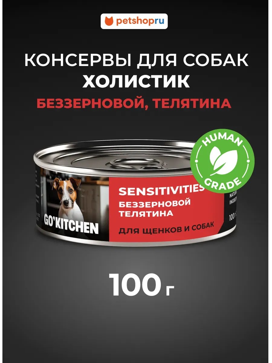 Монобелковый влажный корм холистик-класса GO'KITCHEN SENSITIVITES с телятиной - это нежный деликатес, разработанный специально для собак с чувствительным пищеварением.