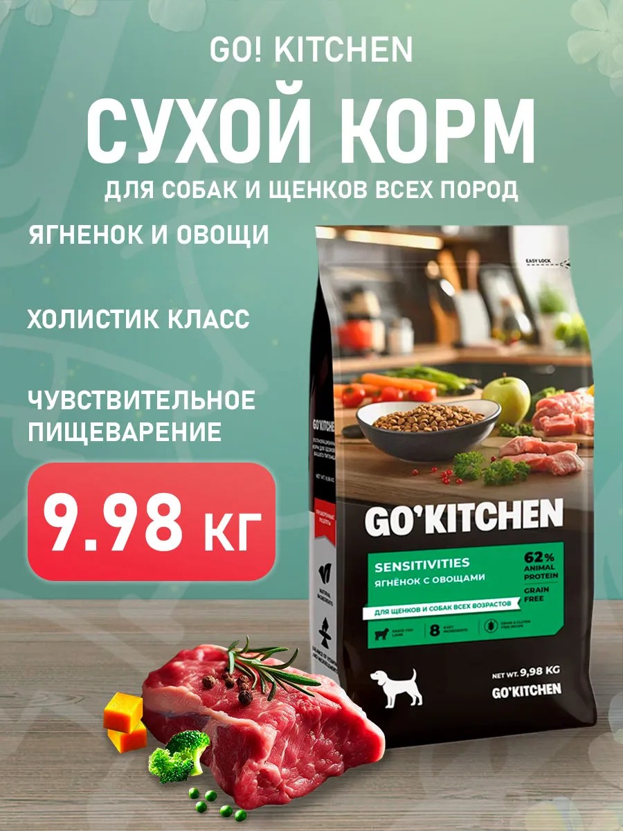 GO KITCHEN Корм сухой Sensitivities для собак щенков ягненок 9,98 кг