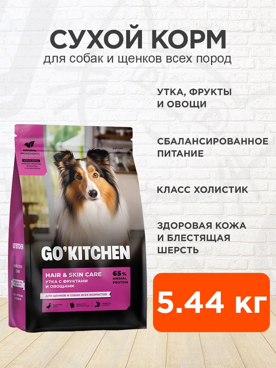 GO KITCHEN Корм сухой Hair Skin Care для собак и щенков утка 5,44 кг