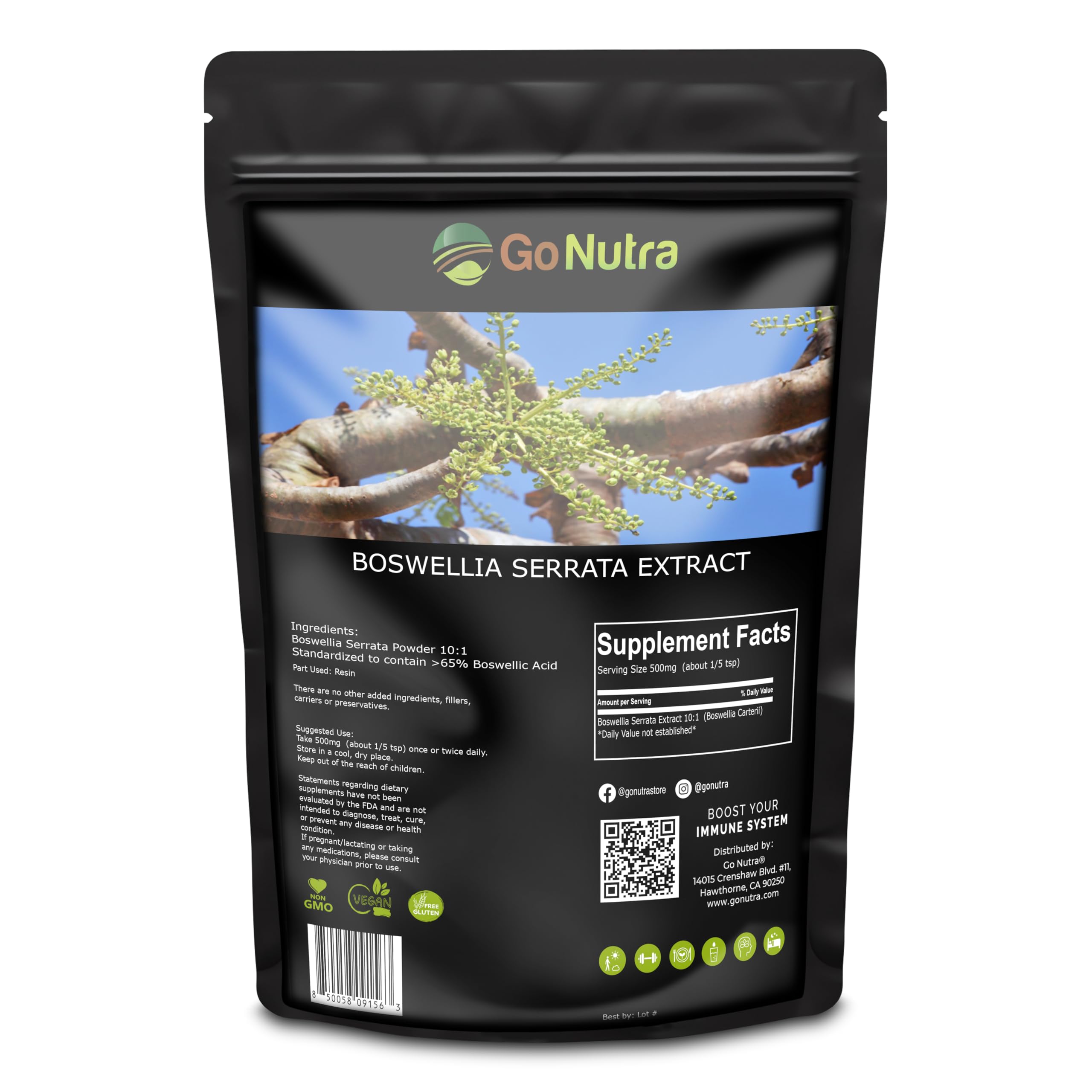 Go Nutra Boswellia Serrata Extract Powder 10:1 Strength 65% Boswellic Acid Frankincense Supplement Joint Support - 8 oz.