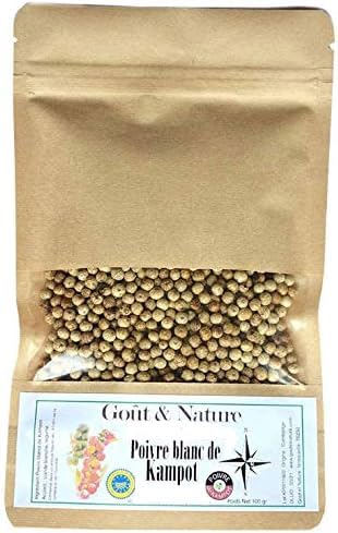 GO T ET NATURE White Kampot Pepper 100g - Certified PGI (Protected Geographical Indication)-PDO (Protected Designation of Origin) Resealable Bag Pepper Grain 100g