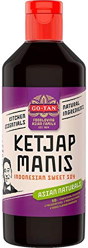 Originating in Indonesia, Ketjap Manis (or sweet soy sauce) has a thicker, caramelized consistency than regular soy sauce. It's perfect for marinating or glazing meats, fish, or vegetables. It's also frequently used as an ingredient in other, more complex sauces. Recipe examples: Strawberry, arugula, and Parmesan salad stir-fried noodles basmati rice with eggplant tuna ventresca with spinach glazed salmon grilled chicken chicken stir-fry marinated Iberian pork ribs braised tofu genmai udon with shrimp. INGREDIENTS Molasses, water, soy sauce (water 1.2 , salt, soybeans, wheat), salt, color (caramel), acid (citric acid). STORAGE INSTRUCTIONS Once opened, store at room temperature for up to three months. See moreGotan - Ketjap Manis- Sauce soja douce (6 unités de 270 ml)DESCRIPTION DU PRODUIT DESCRIPTION DU PRODUIT Originale d'Indonésie, le Ketjap Manis (ou sauce soja sucrée) a une consistance plus dense, et caramelée que la sauce soja « normale ». Il est parfait pour mariner ou glacer les viandes, les poissons ou les légumes. Il est également souvent utilisé comme ingrédient pour faire d'autres sauces plus complexes. Exemples de recettes : salade de fraises, roquette et parmesan. Nouilles sautées Riz basmati aux aubergines. Ventresca thon aux épinards Saumon glacé Poulet grillé. Sauté au poulet. Côtes de porc ibérique marinées. Tofu braisé Genmai udon aux crevettes. INGRÉDIENTS Mélase, eau, sauce de soja (eau 1,2 , sel, fèves de soja, blé), sel, colorant (caramel), acidifiant (acide citrique). MODE D'EMPLOI Une fois ouvert, conserver à température ambiante pendant trois mois Voir plus