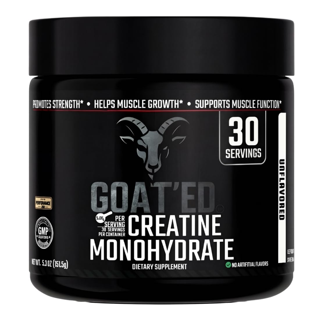 GOAT'ED Creatine Monohydrate Powder | 100% Pure Micronized Creatine for Muscle Growth, Strength & Recovery | High-Absorption, Unflavored Creatine Supplement for Men & Women, 30 Servings