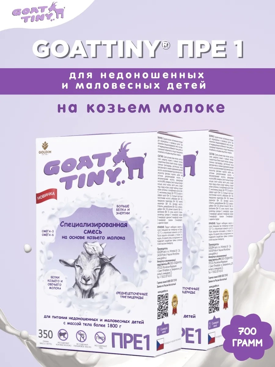Первая и единственная на рынке специализированная детская смесь на основе козьего молока GOATTINY ПРЕ 1 для смешанного и искусственного вскармливания недоношенных и (или) маловесных детей с массой тела от 1800 г. Сбалансированный состав смеси на козьем молоке GOATTINY ПРЕ 1 отвечает всем особым потребностям недоношенных и маловесных детей в питательных веществах и обеспечивает «догоняющий рост» и комфортное пищеварение. Для активного роста и набора массы тела смесь GOATTINY ПРЕ 1 имеет повышенное содержание белка и содержит среднецепочечные триглицериды, как источник быстро доступной энергии. Смесь для недоношенных и маловесных детей обогащена сывороточными белками козьего и овечьего молока для увеличения ее биологической ценности и облегчения усвоения белка. Натуральный жир козьего молока способствует нормальному развитию мозга и улучшения обмена веществ, а полиненасыщенные жирные кислоты DHA / ЕРА (омега-3), ARA (омега-6) предназначены для становления иммунной системы, развития мозга, нервной системы и зрения. Особый комплекс витаминов и минералов, а также нуклеотиды и таурин способствуют созреванию кишечника, нервной и иммунной системы, защищают организма ребенка от инфекций. Смесь на основе козьего молока GOATTINY ПРЕ 1 имеет важное для недоношенных и маловесных детей сбалансированное соотношение: кальция и фосфора (Ca/P) для правильного развития костной ткани и предупреждения появления рахита; цинка и меди (Zn/Cu) для нормального протекания обменных процессов в организме и снижения риска развития микроэлементной недостаточности; калия и натрия (К/Na) для нормального обмена веществ; железа и цинка (Fe/Zn) и железа и меди (Fe/Cu) для оптимального всасывания этих микроэлементов.