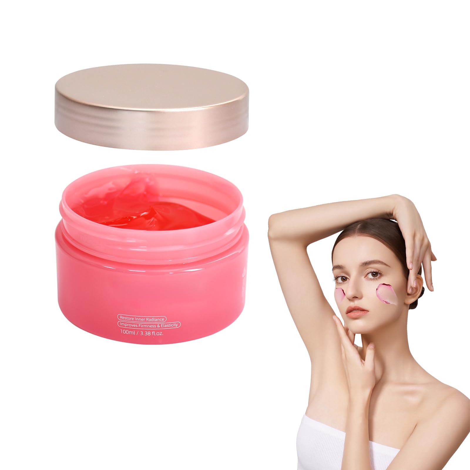 : Rejuvenate your skin with the collagen cream for face. No more dry, matte skin. Our collagen cream combines hydrolyzed collagen and niacinamide for intensive hydration, wrinkle reduction and firm skin. The pink gel texture glides silkily onto the skin, absorbs quickly and leaves a supple, radiant finish. Main benefits: Hydrolyzed collagen: deeply firming and smoothing of fine lines. Niacinamide (vitamin B3): minimizes pores, evens out skin tone and strengthens the skin barrier. Natural extracts: chamomile and marigold soothe, while carrion root revitalizes the skin. Ideal for: Dry, dehydrated skin with 24 hour moisture needs. Anti-aging routines against sagging and uneven texture. Sensitive skin that needs gentle care. Usage tips: Apply morning and evening to a clean face and neck. For an enhanced effect, combine with a collagen serum. Store cool and dry, avoid direct sunlight. Details: Contents: 100 ml. Texture: pink gel cream. Main Ingredients: Water, Glycerin, Hydrolyzed Collagen, Niacinamide, Marigold Extract, Tragacanth Root Extract. SAFETY WARNING don't eatSkin-friendly formula: free from parabens and sulphates. With soothing marigold and tragacanth root extract. Store cool and dry. Delicate floral scent: a hint of natural chamomile and honeysuckle extract gives a luxurious skin feeling with subtle aromatherapy. Strengthening the skin barrier: niacinamide and licorice root extract strengthen the skin's natural protective function and soothe irritation. Light gel texture: the water-based collagen Jelly cream is immediately absorbed, leaves no greasy residue and is ideal as a day care or night mask. Intensive hydration and firming: Hydrolyzed collagen and niacinamide deeply moisturize, tighten skin and reduce fine lines for a youthful glow.100 ml collageen crème voor gezicht, licht geurende collageen jelly cream, roze colloïde collageen crème voor het gezicht, verstevigende gezichtscrème : Verjong je huid met de collageencrème voor gezicht. Geen droge, matte huid meer. Onze collageen crème combineert gehydrolyseerd collageen en niacinamide voor intensieve hydratatie, rimpelvermindering en een strakke huid. De roze geltextuur glijdt zijdezacht op de huid, trekt snel in en laat een soepele, stralende afwerking achter. Belangrijkste voordelen: Gehydrolyseerd collageen: diepwerkende versteviging en gladmaking van fijne lijntjes. Niacinamide (vitamine B3): minimaliseert poriën, compenseert de teint en versterkt de huidbarrière. Natuurlijke extracten: kamille en goudsbloem kalmeren, terwijl draagwortel de huid revitaliseert. Ideaal voor: Droge, gedehydrateerde huid met 24 uur vochtbehoefte. Anti-aging routines tegen slapheid en oneffen textuur. Gevoelige huid, die zachte verzorging nodig heeft. Gebruikstips: 's Ochtends en 's avonds aanbrengen op een schoon gezicht en hals. Voor een versterkt effect combineren met een collageenserum. Koel en droog bewaren, direct zonlicht vermijden. Details: Inhoud: 100 ml. Textuur: roze gelcrème. Hoofdingrediënten: Water, Glycerine, Gehydrolyseerd collageen, niacinamide, goudsbloemenextract, tragantwortelextract. VEILIGHEIDSWAARSCHUWING do not eatHuidvriendelijke formule: vrij van parabenen en sulfaten. Met rustgevend goudsbloem- en dragantwortelextract. Koel en droog bewaren. Delicate bloemengeur: een vleugje natuurlijk kamille- en kamperfoelie-extract geeft een luxueus huidgevoel met subtiele aromatherapie. Versterking van de huidbarrière: niacinamide en zoethoutwortelextract versterken de natuurlijke beschermende functie van de huid en kalmeren irritatie. Lichte geltextuur: de op water gebaseerde collageen Jelly crème trekt direct in, laat geen vettige resten achter en is ideaal als dagverzorging of nachtmasker. Intensieve hydratatie en versteviging: gehydrolyseerd collageen en niacinamide geven diep vocht, maken de huid strakker en verminderen fijne lijntjes voor een jeugdige gloed.