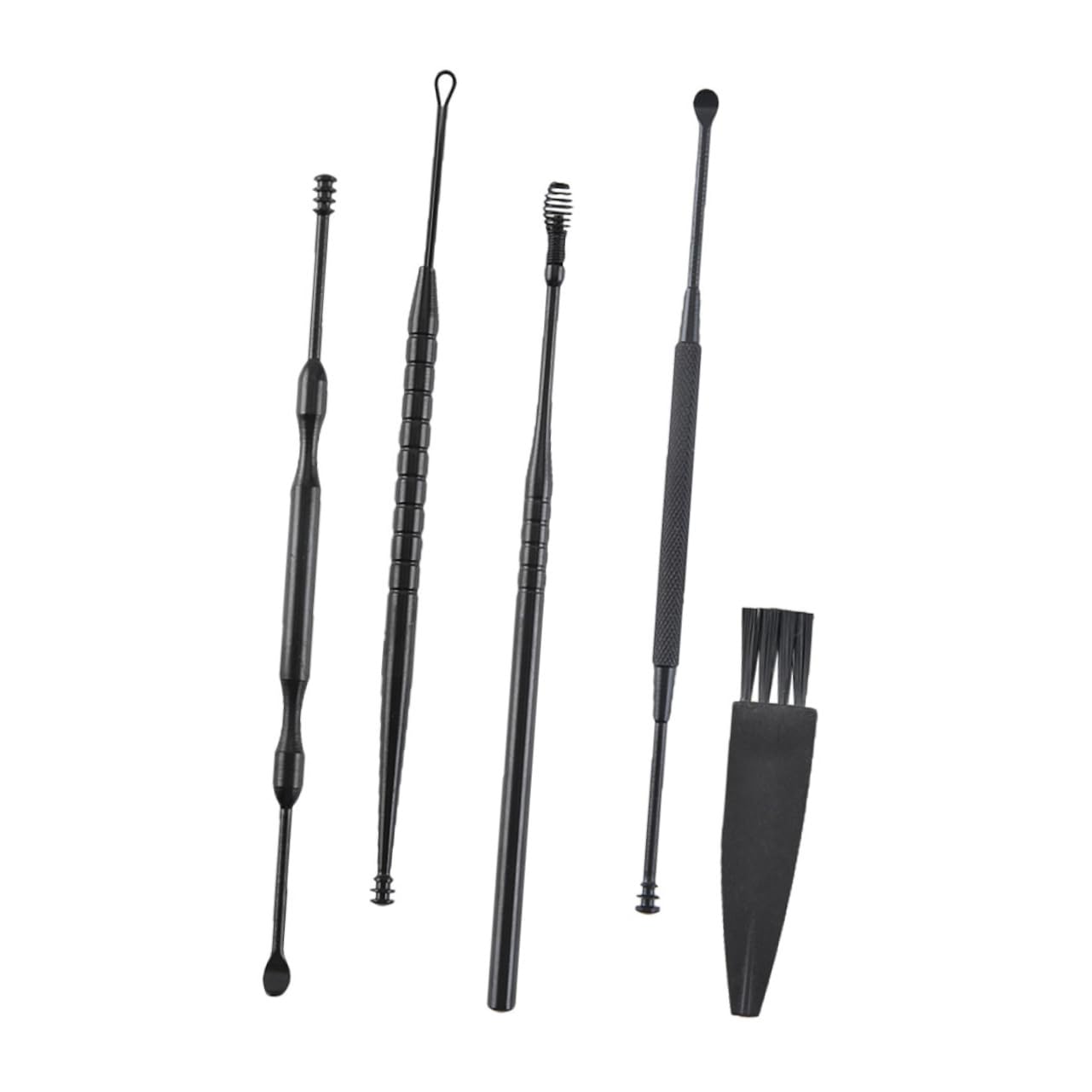 Package Include 1 x set of ear wax removal tools Characteristics -Material:Steel Professional Ear Scoop -Color:Black Ear Wax Clean Tool -Size:12x0.5cm 4.72x0.2in, 11.7x0.3cm 4.6x0.12in, 11.5x0.4cm 4.53x0.16in, 12x0.3cm 4.72x0.12in Ear Clean Tools Kit -Brush size:5.5x1.3cm 2.17x0.51in Practical Ear -Comes with an elegant storage box for stylish ear excavators to store and carry Ear Wax Removing Tool. -With well-designed packaging, you can provide a super Valentine's Day for your loved ones Portable Ear -Practical ear wax cleaning tools. They your ear canal more clean and Stainless Steel Ear Spoon. -Handle is designed to be firm and non-skid use Reliable Ear -Suitable for family or Practical Ear Cleaning Tools. Goods Description Reliable Ear Compared with the traditional cotton swab, which may push the earwax into the ear, our earwax removal tools can more clean your earwax.Professional Ear Scoop Help to itching and massage the ear canal while cleaning.Stainless Steel Ear Spoon This product is a set of steel ear wax clean tools
