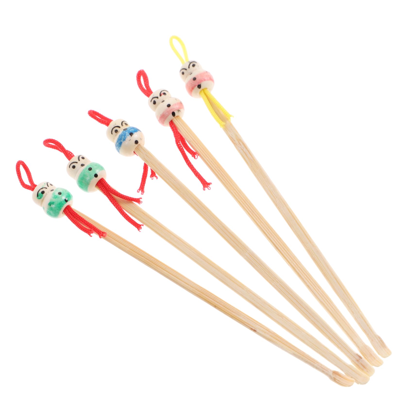 Gogogmee 5pcs Bamboo Ear Cleaners Cute Doll Head Design Use Wax Removal Tools for Family Eco-Friendly Skid-Resistant Personal Care Accessory
