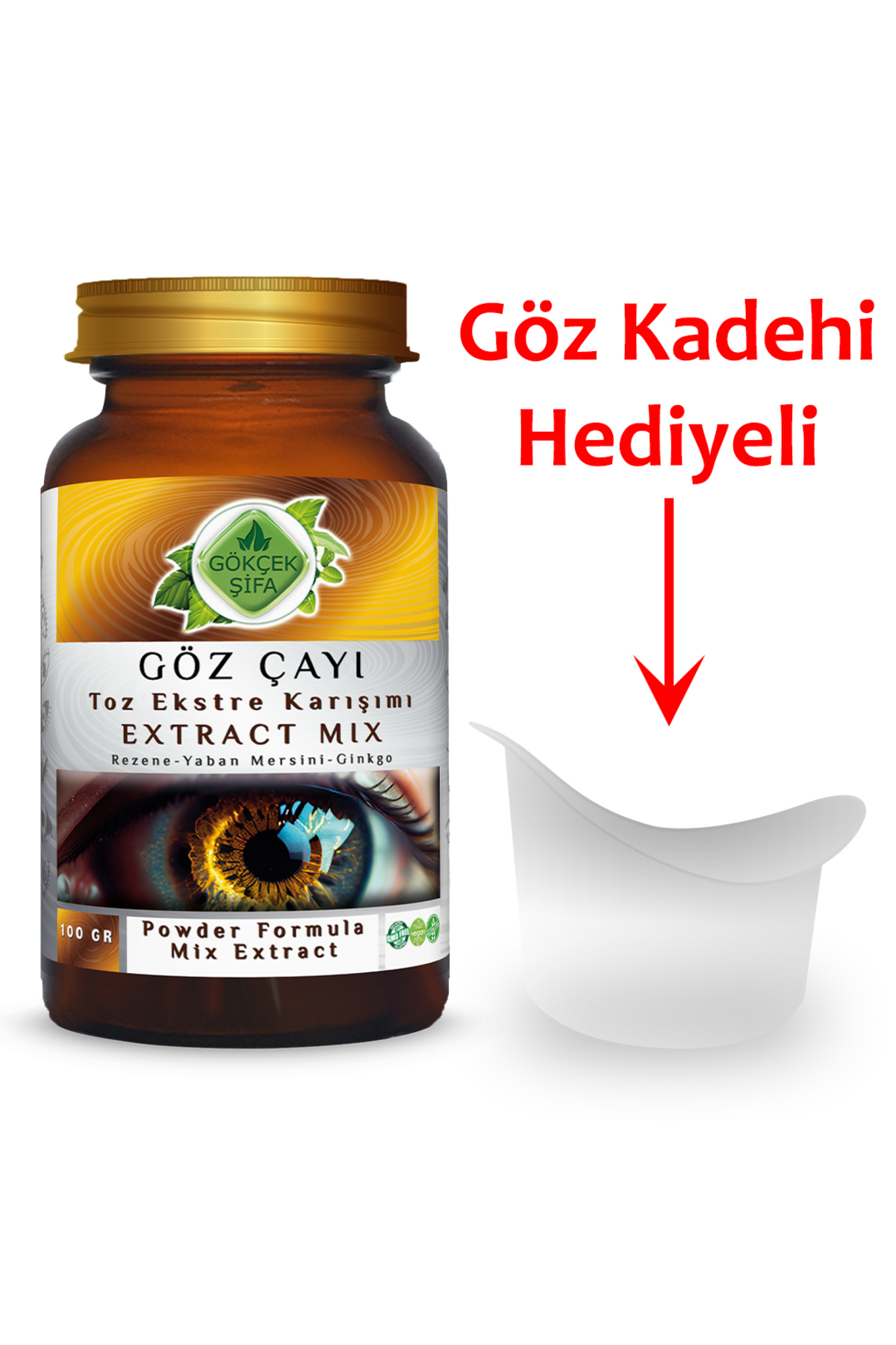 Gokcek Healing Eye Tea Powder Extract Mixture 30 gr. Glass Jar