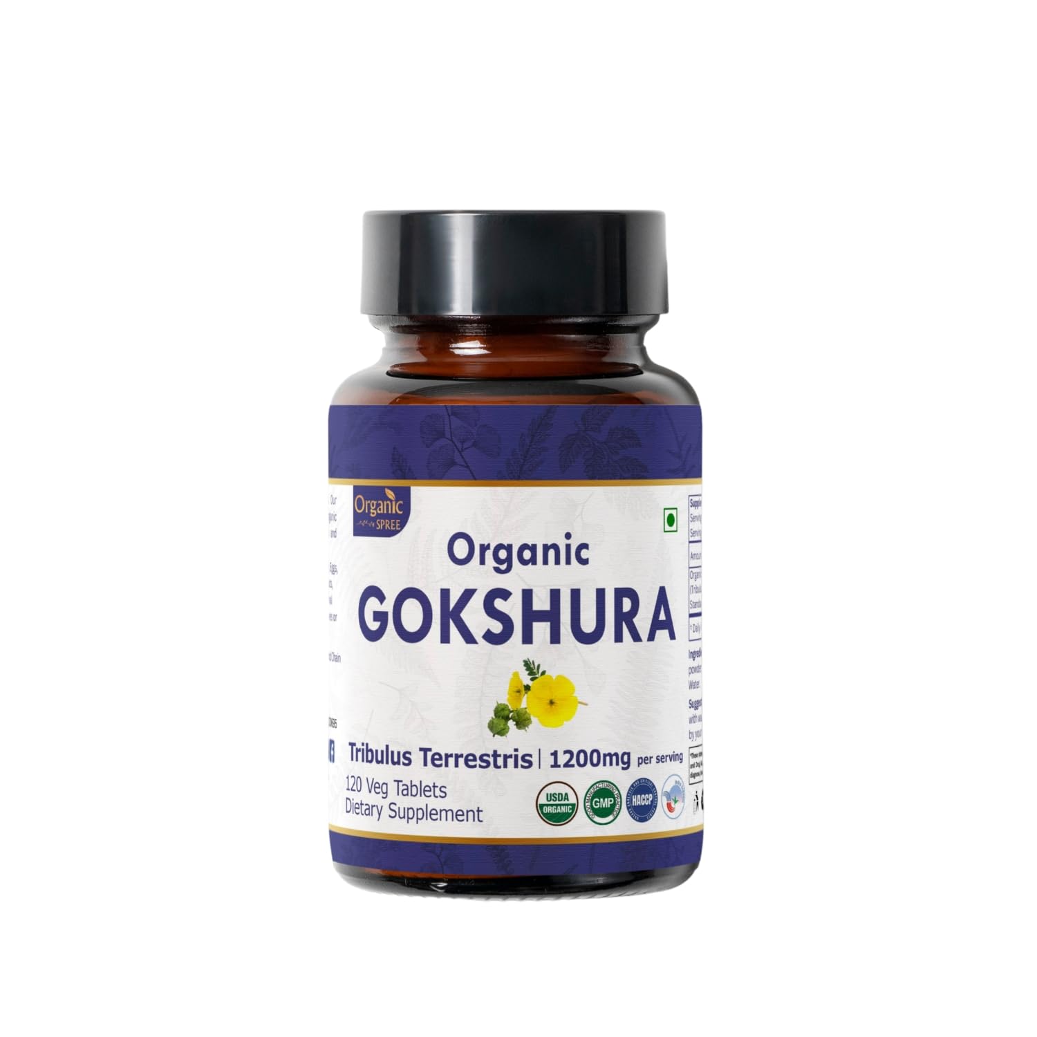 Quality and Safety : Organic Spree GOKSHURA is crafted in a third-party GMP-certified facility dedicated to Good Manufacturing Practices. Our stringent testing protocols verify its identity, potency, and safety using industry-recognized methods and advanced instrumentation. . Storage : Store the tablets in a cool, dry place away from direct sunlight to maintain their potency and shelf life. . Made with Goodness : Organic Spree Gokshura Tablets are USDA Organic Certified, Vegetarian-friendly, and free from artificial colors, flavors, and preservatives. Enjoy the benefits of Organic GOKSHURA in every tablet. . Organic Gokshura (Tribulus Terrestris) supports healthy urinary tract function, supports immunity and strength. . Nutritious Superfood : Experience the excellence of Organic Spree's Premium Gokshura Tablets. Our formulation harnesses the highest-quality from the freshly harvested Tribulus Terrestris. .