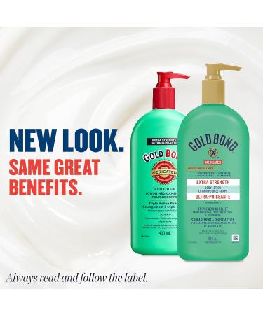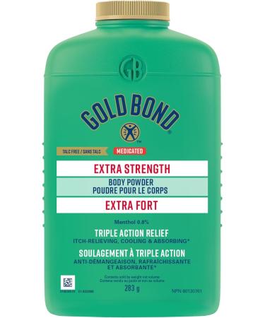 Gold Bond Extra Strength Medicated Body Powder, 283g Bottle, Cornstarch-Based Moisture Absorbing, Odour Control Cooling Powder Offers Temporary Pain and Itch Relief of Minor Skin Irritations Gold Bond Extra Strength Medicated Body Powder shares the same medically proven ingredients as our Original Strength Powder combined with the finest plant-based ingredients and oils, but with 5x times the skin care protection, anti chaffing, itch relief and cooling ability. Some days you need a little relief and other days you need a lot. That's why the dual formula of 5% zinc oxide and 0.8% menthol in this odour eliminator and cooling powder provides triple-action temporary relief to cool and soothe the skin on contact, absorb excess moisture, and relieve pain and itching associated with minor cuts and scrapes, minor burns including sunburn, insect bites, and other minor skin irritations. Trusted since 1908, Gold Bond Extra Strength Medicated Body Powder is gentle enough to be used every day, whether you’re at home, as part of your pre-workout routine at the gym, before/after work, or whenever you want lasting extra deodorant protection and that cool, refreshing feeling. To ensure this anti itch powder is right for you, always read and follow the label. Gold Bond Extra Strength Body Lotion, 400ml Pump Bottle, Medicated Lotion that Moisturizes and Provides Itch Relief from Sunburn, Minor Skin Irritation, Minor Cuts and Insect Bites Gold Bond Extra Strength Body Lotion is our skin repair solution for dry, itchy, and irritated skin. This medicated lotion offers a triple-action formula that provides the moisture, itch relief, and gentle soothing your skin needs. Gold Bond Extra Strength anti itch lotion for dry, itchy skin is formulated with 0.5% Menthol to temporarily relieve pain and itch associated with scrapes and other minor skin irritations and aloe to help soothe and comfort by moisturizing your skin. This dry, itchy skin lotion also includes 7 moisturizers to provide lasting hydration and 3 vitamins such as Vitamin B (niacinamide) to help improve the appearance of the skin, Vitamin C to protect against environmental stressors that cause dry skin, and Vitamin E to help prevent moisture loss. This moisturizer for dry, itchy skin is for adults and children over 2 years old only. To ensure this product is right for you, always read and follow the label.Product 2: Triple Action Relief - This medicated lotion for dry, itchy skin moisturizes, cools and soothes dry, itchy skin, so you can get back to feeling your best. Product 2: Nurtures Problem Skin - Gold Bond Extra Strength Body Lotion provides itch relief and temporarily relieves pain associated with scrapes, cuts, sunburn and insect bites; the 400ml pump bottle makes application easy. Product 1: Extra Powerful - With 5x the anti-itch power compared to our Original Strength Body Powder, this extra-strength cooling powder contains 5% zinc oxide for skin protection and 0.8% menthol for cooling, itch and pain relief. Product 1: Triple Action Relief - This anti itch powder provides a cooling sensation on contact, soothing itch relief and moisture absorption, making it perfect for home use, as a workout powder, or for any occasion when you want lasting extra deodorant protection. Product 1: Refreshing and Soothing - Extra-cooling and moisture absorbing powder for body use that absorbs odour-causing sweat, leaving your skin feeling fresh, smooth and healthy. Product 1: Medicated Powder for Pain and Itch Relief - Gold Bond Extra Strength Medicated Body Powder provides temporary itch and pain relief of minor skin irritations such as cuts and scrapes, sunburn and insect bites; available in a 283g bottle.