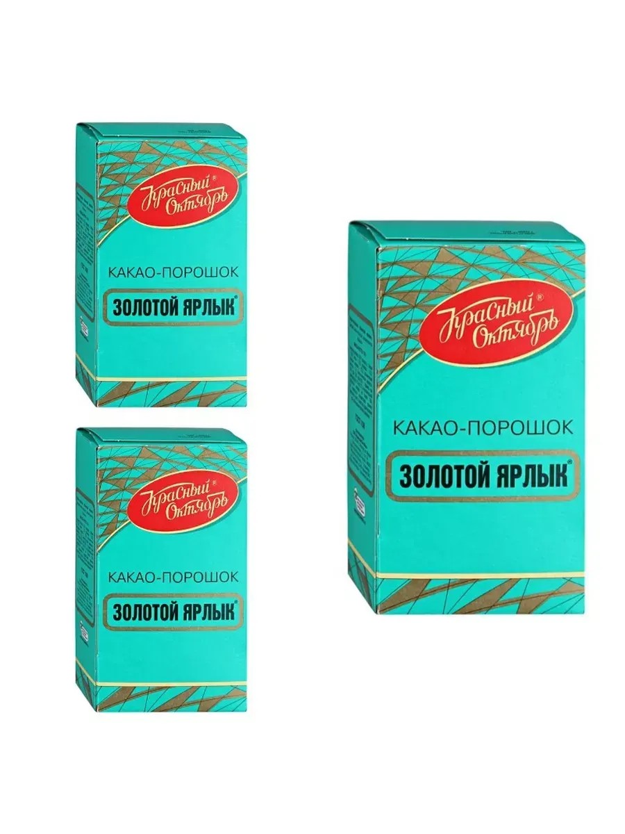 Золотой Ярлык Какао порошок Красный Октябрь, 100 г 3 штуки. Какао-порошок «Золотой Ярлык» самая знаменитая марка российского какао. Натуральный какао-порошок производит «Красный Октябрь» с начала ХХ века, и точно такой же порошок используется на фабрике при производстве шоколада и конфет. В домашних условиях «Золотой Ярлык» становится ароматным горячим шоколадом или молочным какао, глазурью для любимой выпечки. Яркий многогранный шоколадный вкус, сдобренный нотками ванили для фирменных домашних десертов и кулинарных экспериментов. Производитель: ПАО Красный Октябрь.