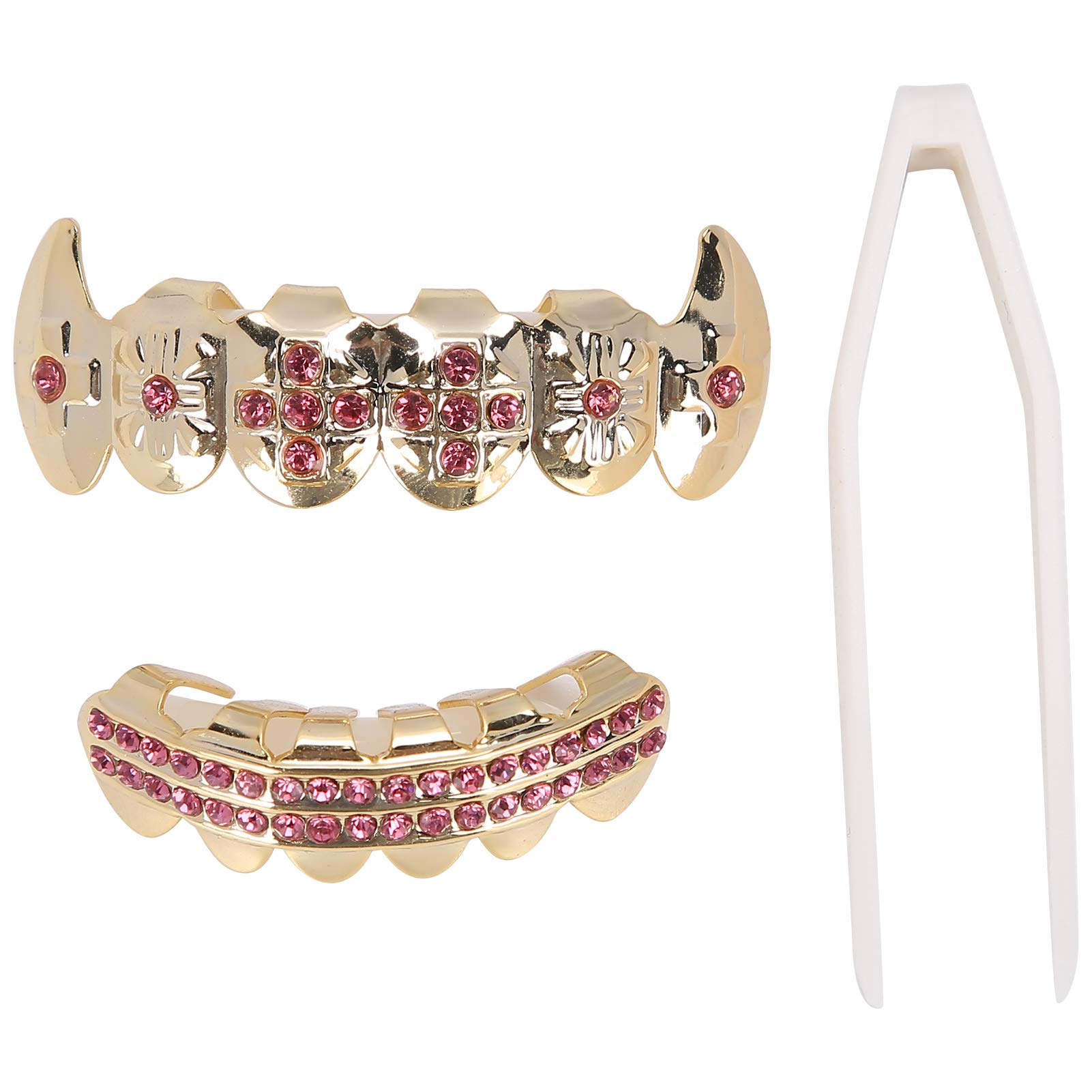 Gold Teeth Brace Set Hip Hop Punk Custom Fit Metal Teeth Decoration Jewelry Gold Teeth Grillz Oral Pain ReliefOral Care()