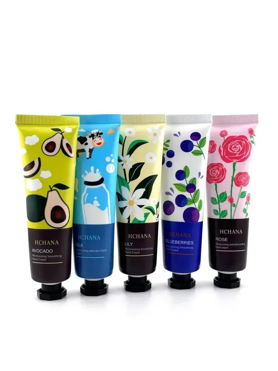Package contents30 g tube x 5 pcs; hand cream set - 5 pcs. Milk; blueberry; avocado; rose, lily