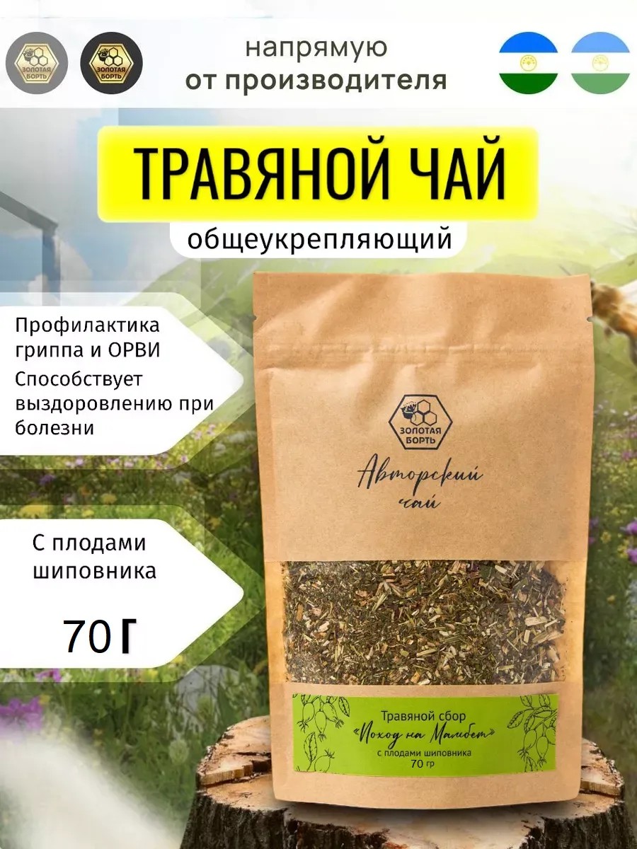 Авторский траяной фиточай "Поход на Мамбет" Золотая борть – это уникальный травяной ягодный сбор, созданный на основе натуральных ингредиентов собранных в лесах. В нашем чайном напитке соединены вместе лучшие ягоды и травы!