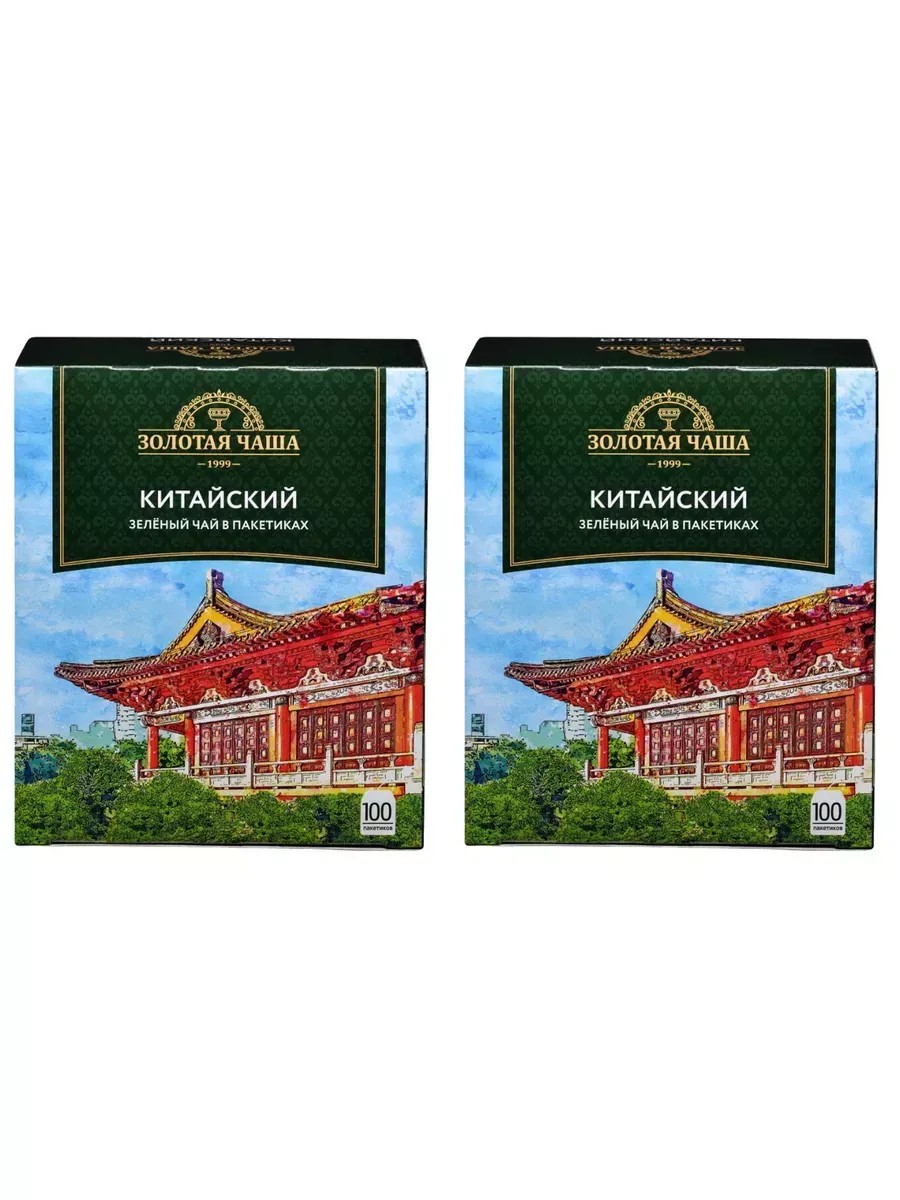 В комплекте 2 упаковки по 100 пакетиков. Золотая Чаша, Чай зеленый в пакетиках. В зеленом чае Золотая Чаша используется настоящий китайский чай, поэтому это не только вкусный, но и полезный напиток, обладающий прекрасными антиоксидантными свойствами. Доказано, что зеленый чай на 30% снижает риск инфаркта и на 50% риск онкологических заболеваний. В Китае с его помощью лечат раны и заболевания желудка, снижают температуру тела и уровень сахара в крови.
