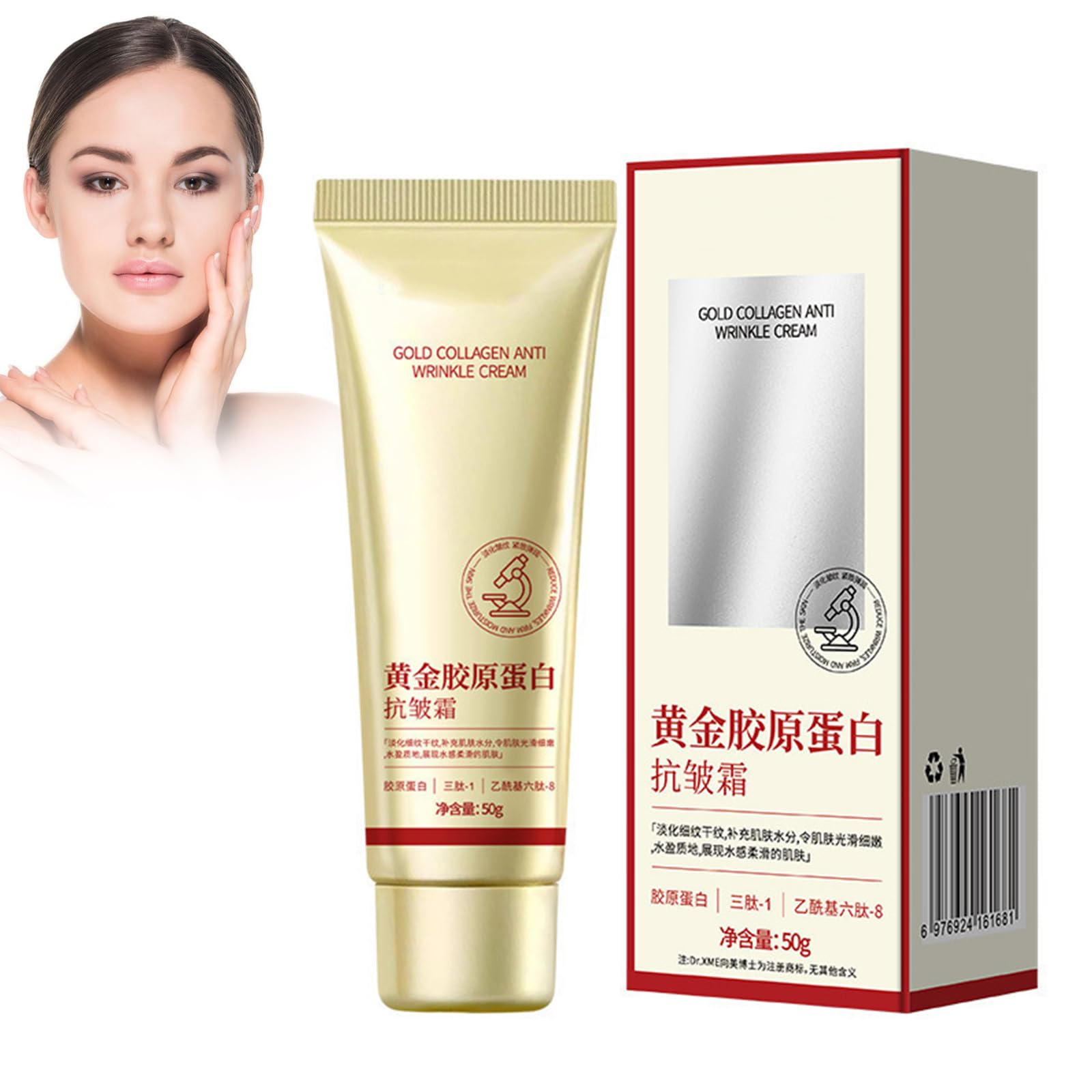 facial cream SAFETY WARNING no swallowSilky texture, easily absorbed: the anti-wrinkle cream has a light, silky, creamy texture that feels very comfortable on the skin without being heavy or greasy. It is quickly absorbed into the skin, without leaving a sticky residue on the skin's surface, allowing the skin to breathe freely. Improve firming contours: The anti-wrinkle cream's firming ingredients can stimulate the production of collagen and elastin fibers in the skin, increase skin support and improve facial contours. After use, the skin becomes firmer and more elastic and the facial contours are better defined. Fade fine lines and wrinkles: anti-wrinkle cream is added with a variety of anti-wrinkle ingredients to reduce the appearance of fine lines and wrinkles reduce the appearance of wrinkles. With long-term use, fine lines around the eyes, wrinkles, forehead wrinkles, etc. can be effectively reduced, making the skin smoother and softer. High concentration of collagen: The anti-wrinkle cream is enriched with a high concentration of collagen, which can directly replenish the skin's collagen loss, making this anti-wrinkle cream restore the skin's fullness and elasticity. Revitalize your skin: our anti-wrinkle cream is specially formulated with valuable particles. With the action of promoting skin metabolism and improving microcirculation, it can accelerate skin cell renewal and make the skin firmer and more elastic.Golden Collageen anti-rimpelcrème, Koreaanse collageen-gezichtscrème, gouden collageencrème, langdurige, diep hydraterende, verstevigende crème, anti-aging en huidversteviging gezichtscrème gezichtscrème VEILIGHEIDSWAARSCHUWING no swallowZijdeachtige textuur, gemakkelijk intrekkend: de anti-rimpel crème heeft een lichte, zijdeachtige, romige textuur die zeer comfortabel aanvoelt op de huid zonder zwaar of vettig te zijn. Het trekt snel in de huid in, zonder een kleverige residu op het huidoppervlak achter te laten, zodat de huid vrij kan ademen. Verstevigende contouren verbeteren: de verstevigende ingrediënten van de anti-rimpel crème kunnen de productie van collageen- en elastinevezels in de huid stimuleren, de ondersteuning van de huid verhogen en de gezichtscontouren verbeteren. Na gebruik wordt de huid steviger en elastischer en worden de gezichtscontouren beter gedefinieerd. Vervagen fijne lijntjes en rimpels: anti-rimpel crème is toegevoegd met een verscheidenheid aan anti-rimpel ingrediënten om het verschijnen van fijne lijntjes en rimpels te verminderen het ontstaan van rimpels te verminderen. Bij langdurig gebruik kunnen fijne lijntjes rond de ogen, rimpels, voorhoofdrimpels enz. effectief worden verminderd, waardoor de huid gladder en zachter wordt. Hoge concentratie van collageen: de anti-rimpelcrème is verrijkt met een hoge concentratie van collageen, dat het collageenverlies van de huid direct kan aanvullen, waardoor deze anti-rimpelcrème de volheid en elasticiteit van de huid herstelt. Revitaliseer je huid: onze anti-rimpel crème is speciaal samengesteld met waardevolle deeltjes. Met de werking om de stofwisseling van de huid te bevorderen en de microcirculatie te verbeteren, kan het de vernieuwing van de huidcellen versnellen en de huid steviger en elastischer maken.