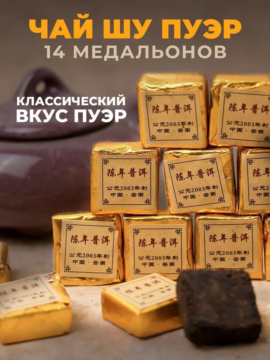 | Состав | Чай Китайский Шу Пуэр Золотой квадратик черный 14шт |