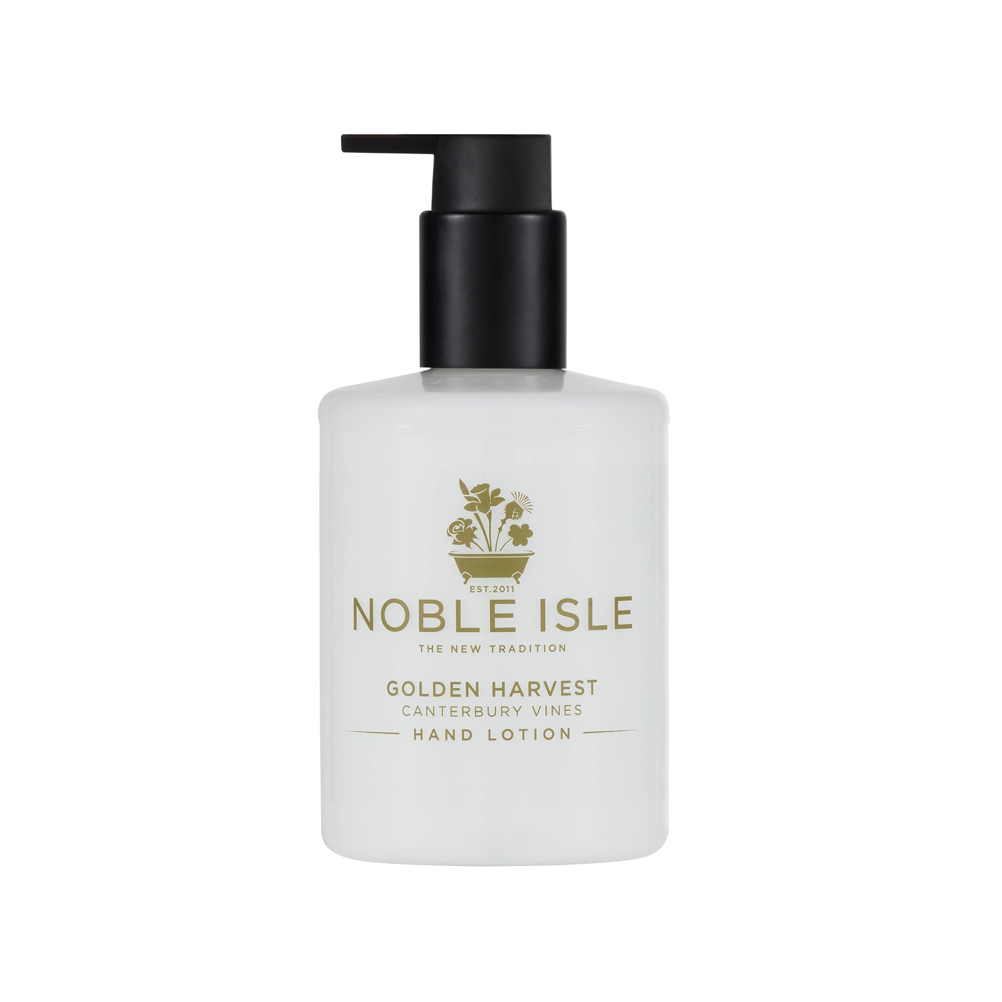 A glorious blend of sweet fruitiness inspired by vine fruits with hints of violet leaf, sun-ripened grape and green apple, adorned with the sweet fizz of juniper berries and antioxidant grape extract from the Kent Downs.Massage into hands daily to keep them soft and protected. Grapes are one of the most powerful antioxidants in the plant world, promoting clean, radiant, and healthy skin. With the fresh, fruity scent of a blend of three English grapes, this exquisite luxury hand lotion is the perfect addition to any bathroom.Un mélange glorieux de fruité doux inspiré des fruits de la vigne avec des notes de feuille de violet, de raisin mûré au soleil et de pomme verte, orné du doux fizz de baies de genièvre et extrait de raisin antioxydant des Downs du Kent.Masser dans les mains tous les jours pour les garder douces et protégées. Les raisins sont l'un des antioxydants les plus puissants du monde végétal, favorisant une peau propre, lumineuse et saine. Parfum frais et fruité d'un mélange de trois raisins anglais, cette lotion de luxe exquise pour les mains est le complément parfait à n'importe quelle salle de bain.Golden Harvest Hand Lotion 250ml