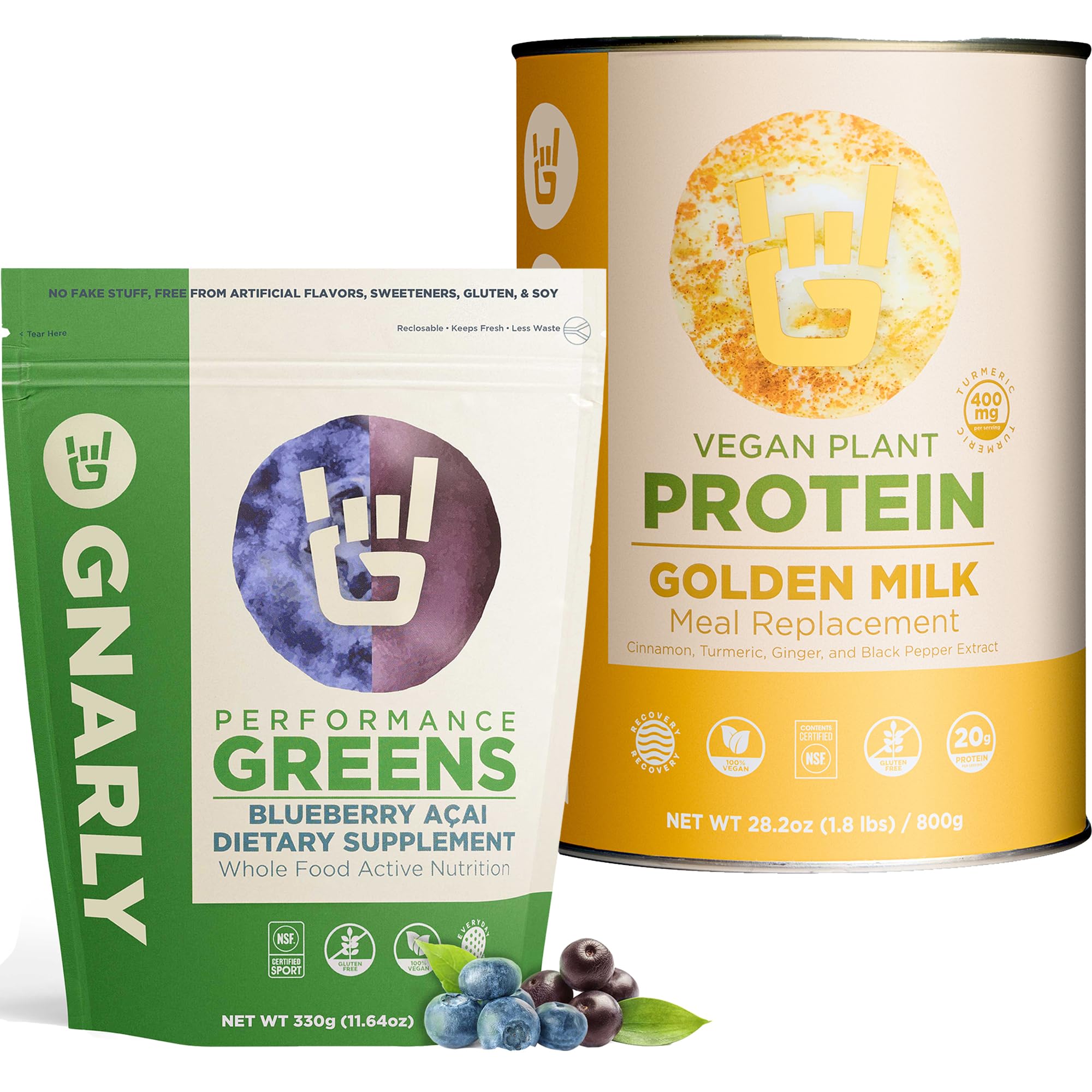Golden Milk Vegan Protein Powder and Gnarly Performance Greens Blueberry Açai, (11.64 oz)