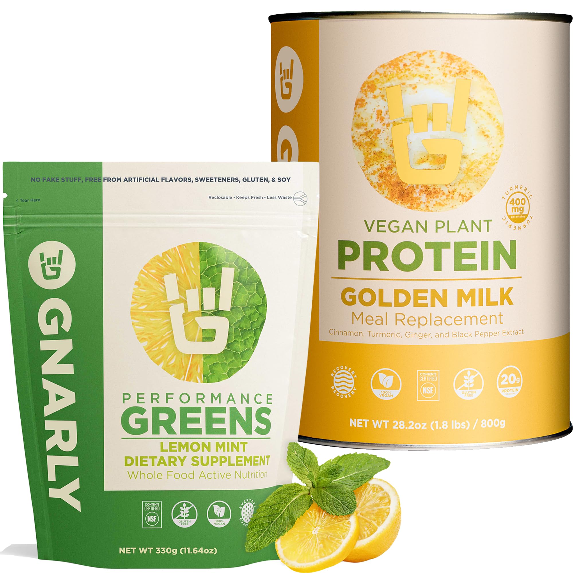 Golden Milk Vegan Protein Powder and Gnarly Performance Greens Lemon Mint (11.64 oz)