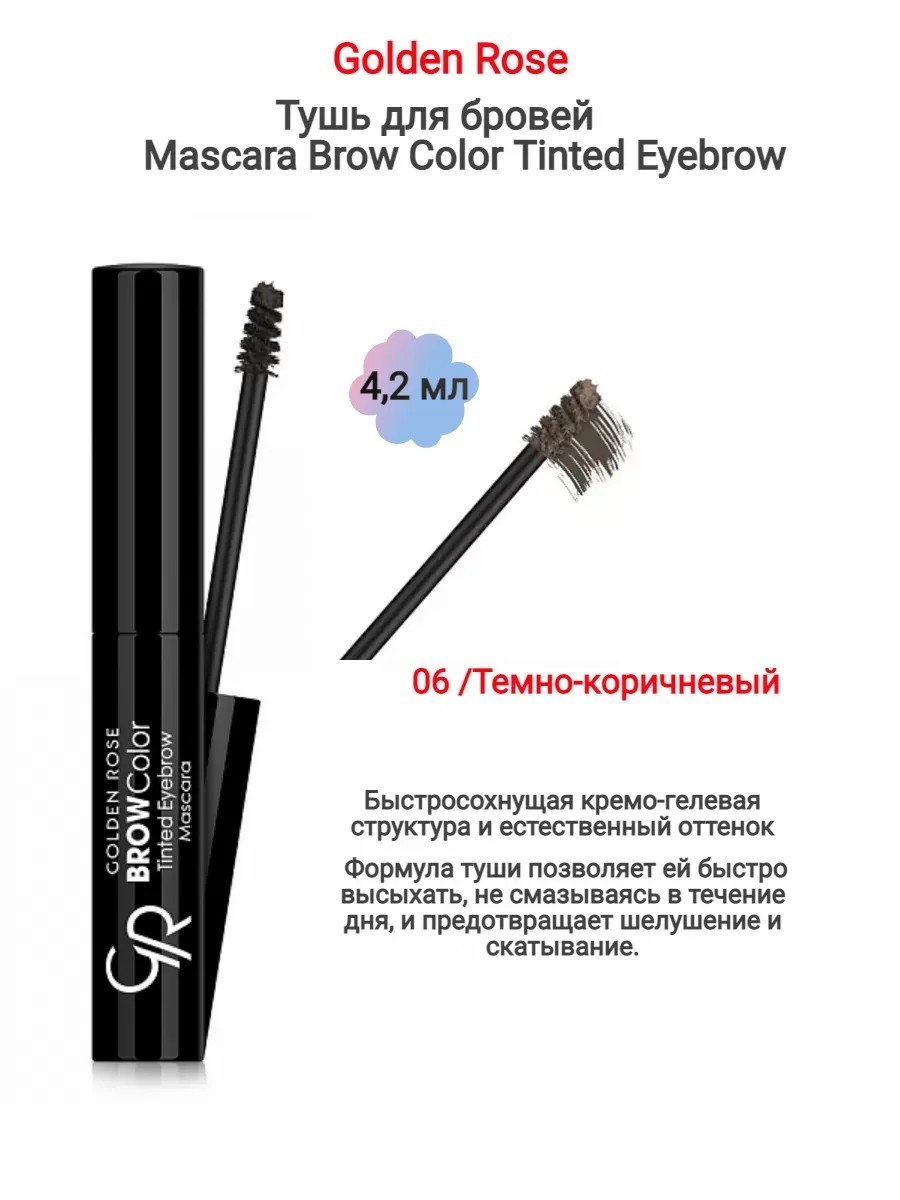 | Комплектация | Тушь для бровей Golden Rose Mascara Brow Color Tinted Eyebrow/темно-коричневая |