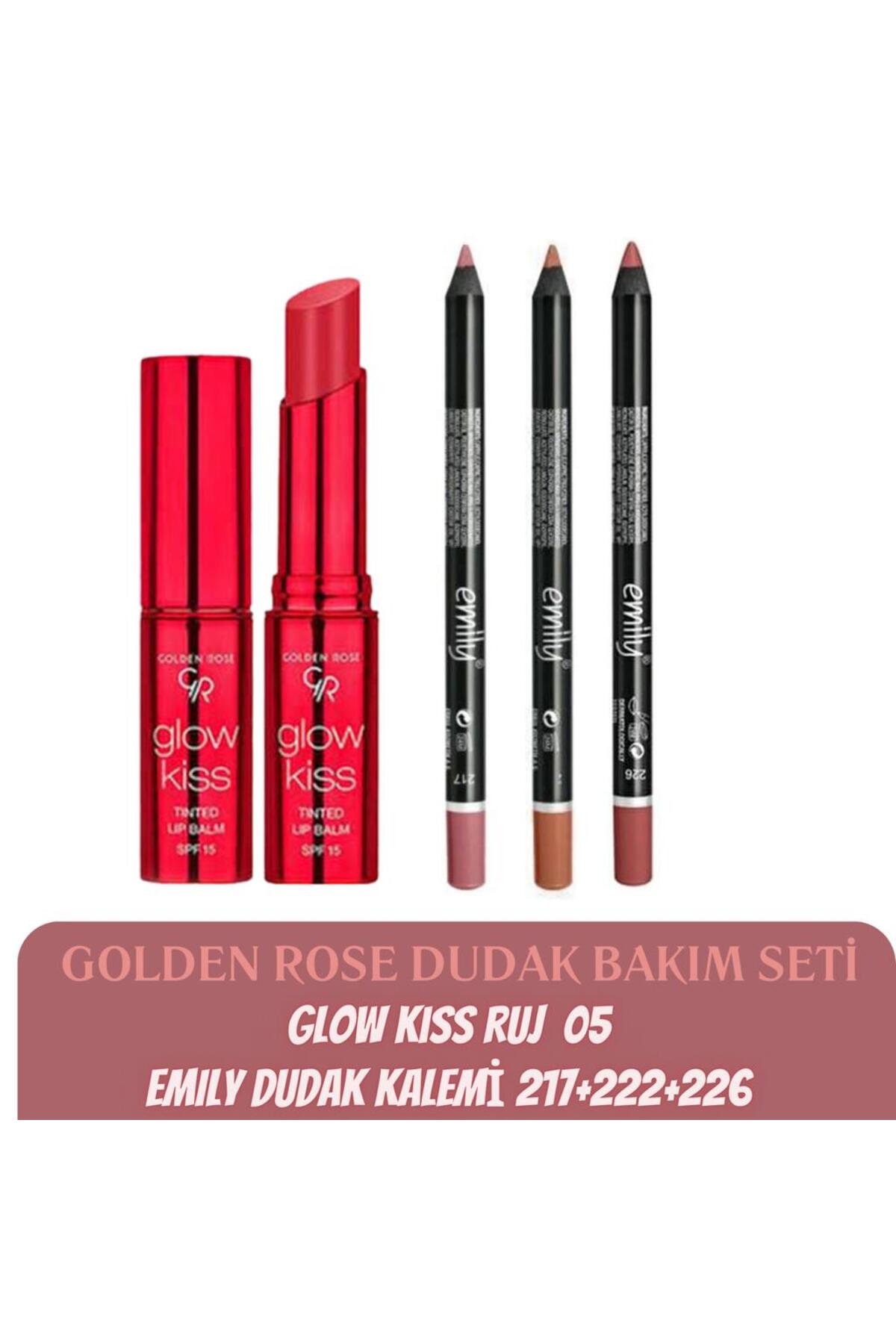 Golden Rose Glow Kiss Tinted Lip Balm No 05 + Golden Rose Emily Lip Pencil 217+222+226