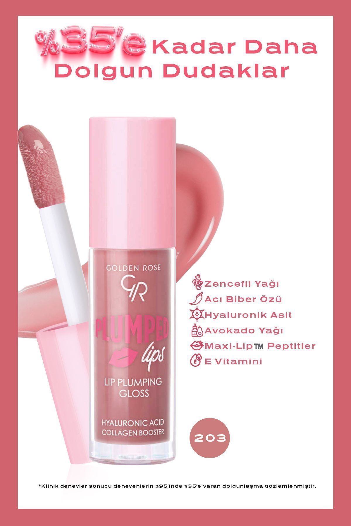 Golden Rose Plumped Lips Lip Plumping Gloss No: 203 - Plumping Lip Gloss - 8691190528492