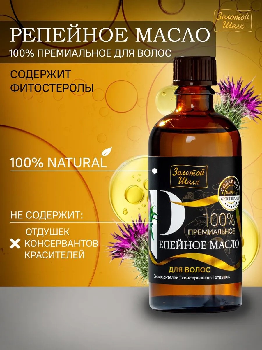 Золотой шелк Репейное масло для волос 100% 100 мл