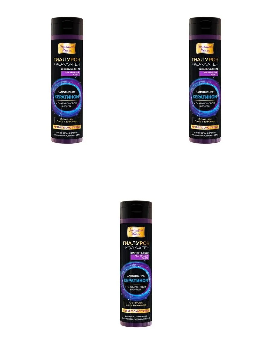 Золотой шелк шампунь filler керапласт гиалурон+коллаген 250мл 3 шт