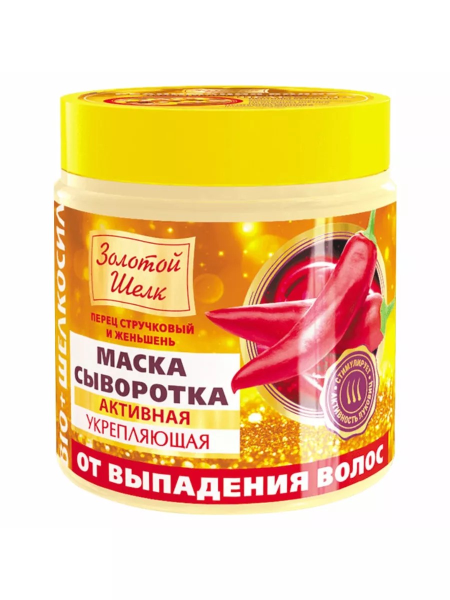 Золотой шелк Маска сыворотка для волос Активная укрепляющая от выпадения волос 500мл.