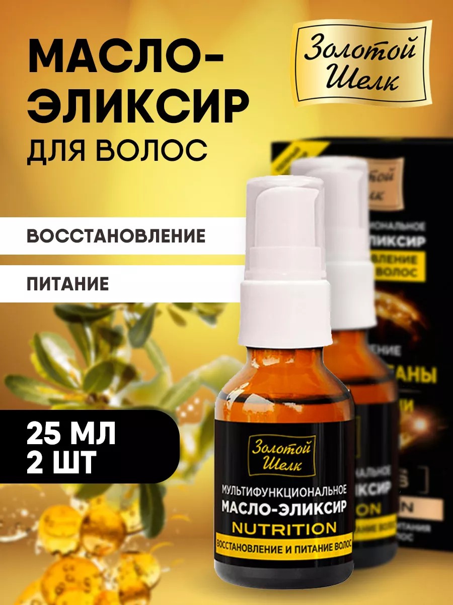 Золотой шелк Масло-эликсир восстановление и питание волос 25мл*2шт. Здоровые и красивые волосы! Сочетание 100% натуральных масел арганы и ореха макадамии в составе обеспечивает глубокое питание и увлажнение волос, а также восстанавливает их по всей структуре. Масло-эликсир придает природное сияние, снимает «пушение», разглаживает волосы и облегчает расчесывание. Глубокое восстановление; интенсивное питание и увлажнение; разглаживание волос по всей длине; естественное сияние. Сверхлегкая текстура масла быстро впитывается, не утяжеляя волосы и не оставляя жирной и липкой пленки. Масла арганы и макадамии содержат максимальный процент линолевой кислоты, омега-6 семейства, ненасыщенных жирных кислот, которые способствуют глубокому восстановлению волос. Масло арганы — драгоценный «королевский продукт». Ценнейшее масло природного происхождения, обогащенное ненасыщенными жирными кислотами. Глубоко питает и увлажняет, обеспечивает насыщенное сияние от корней до самых кончиков. Масло макадамии — «усилитель сияния» с высоким содержанием витамина Е, олеиновой, линолевой, эйкозеновой жирных кислот. Интенсивно питает и укрепляет, придает блеск волосам. Способ применения: На влажные волосы: 3 капли равномерно нанесите на влажные волосы перед укладкой, отступая от корней на 2-3 см. На сухие волосы: 2 капли распределите на сухие волосы по всей длине для защиты и блеска, уделив особое внимание кончикам. Для особого ухода: 2-3 капли добавить в порцию шампуня, маски или бальзама для усиления действия средств. Состав: Cyclopentasiloxane, Dimethiconol, Argania Spinosa (Argan) Оil, Macadamia Ternifolia Nut Oil, Parfum, Alpha-Isomethyl Ionone, Benzyl Salicylate, Butylphenyl Methylpropional, Citronellol, Limonene, Hexyl Cinnamal.