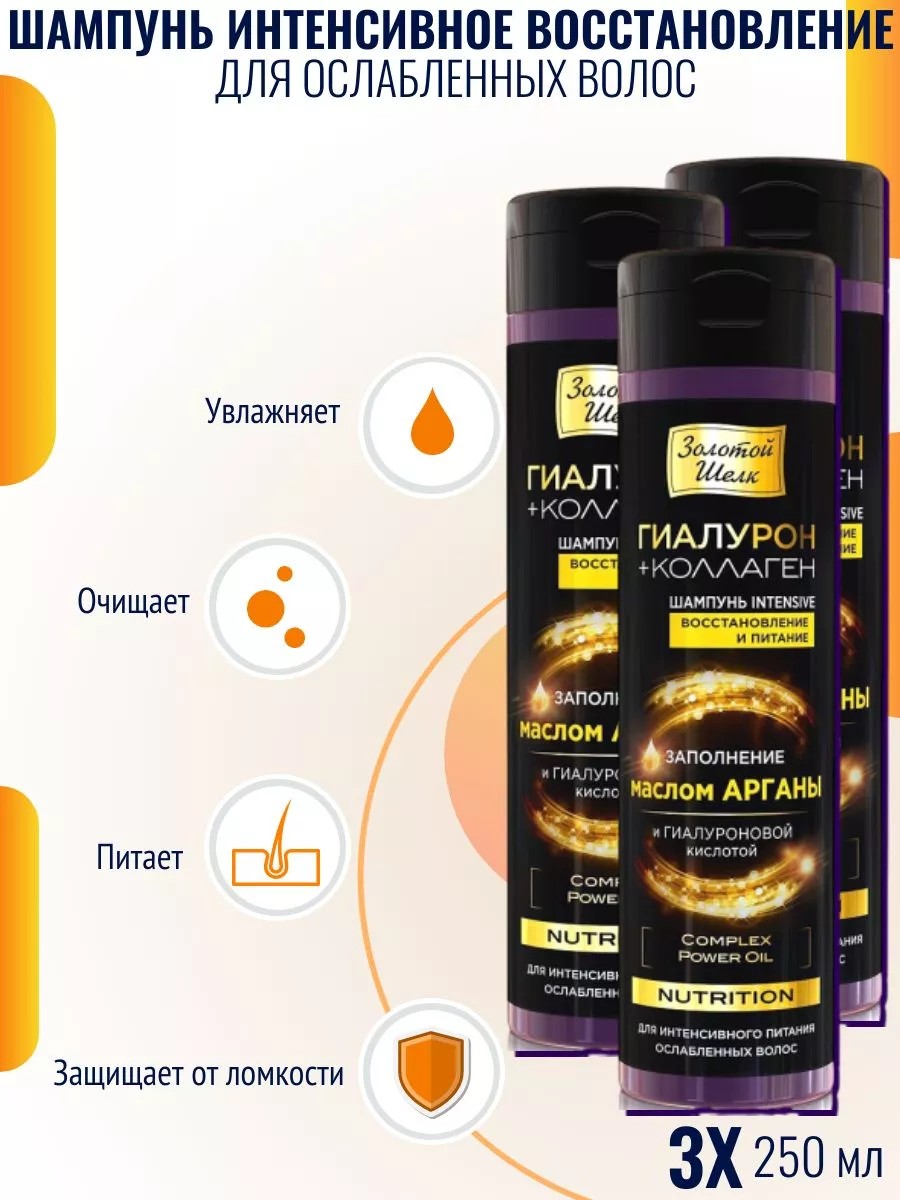 Золотой шелк Шампунь intensive nutrition гиалурон+коллаген 3 шт.