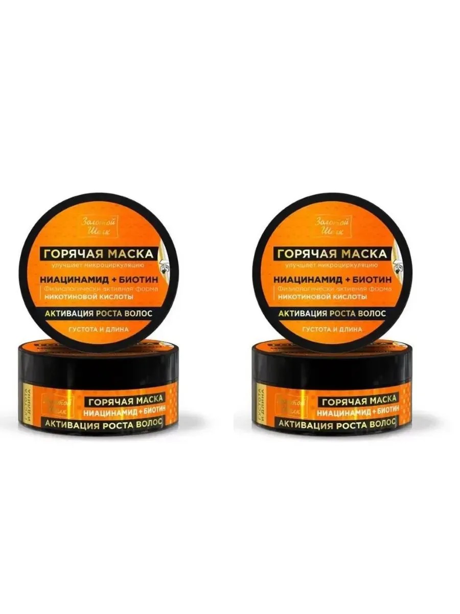 ЗОЛОТОЙ ШЕЛК МАСКА ГОРЯЧАЯ АКТИВАЦИЯ РОСТА ВОЛОС НИАЦИНАМИД+БИОТИН 180МЛБренд Золотой шёлк - эффективная косметика для волос. Устраняет выпадение и ускоряет рост волос, интенсивно восстанавливает и укрепляет. Представлены средства для ухода за волосами, активизации роста волос и укрепления корней.ЗОЛОТОЙ ШЕЛК МАСКА ГОРЯЧАЯ АКТИВАЦИЯ РОСТА ВОЛОС НИАЦИНАМИД+БИОТИН - для профилактики выпадения волосВнешний вид и свойства: однородная масса без посторонних включений белого цвета. С легкой, свежей отдушкой.Горячая маска для волос, благодаря разогревающему эффекту и содержанию витаминов группы В: ниацинамида и биотина, маска предназначена для профилактики выпадения волос, способствует активации факторов роста и сохранению здорового вида волос.Витамины группы В3 и В7 регулируют деятельность сальных желез, что способствует снижению жирности кожи головы.• Горячий эффект создается за счет специального разогревающего активного компонента, который не вызывает раздражения, а инициирует каскад тепловых ощущений через нейроны. Это безопаснее других разогревающих компонентов. При этом волосы не пересушиваются, окрашенные волосы не поменяют цвет, как это бывает от перца.• Ниацинамид - улучшает микроциркуляцию и увлажняет корни волос, снимает зуд, снижает излишнюю жирность скальпа, также «склеивает» чешуйки локонов, тем самым придавая им визуально блеск и шелковистость.• Биотин - служит для профилактики выпадения, поддерживает эластичность волос, защищает цветовой пигмент от преждевременного разрушения.-способствует росту волос-улучшает микроциркуляцию, укрепляет корни-снижает жирность кожи головыРезультат: Густые, укрепленные, шелковистые, блестящие волосы.Нанесите на чистые влажные волосы и кожу головы.Оставьте для воздействия на 5-10 минут, после смойте теплой водой.Применять 1-2 раза в неделю.После использования рекомендуется использовать спрей-кондиционер Золотой Шелк.ВНИМАНИЕ! Не использовать маску на поврежденной коже. Избегайте попадания в глаза. При попадании в глаза промыт