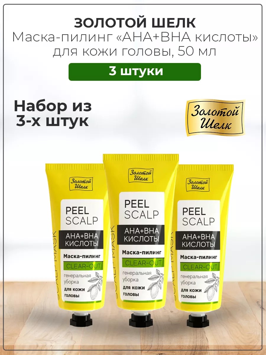 Золотой шелк Маска-пилинг для кожи головы AHA+BHA кислоты 50 мл 3 уп