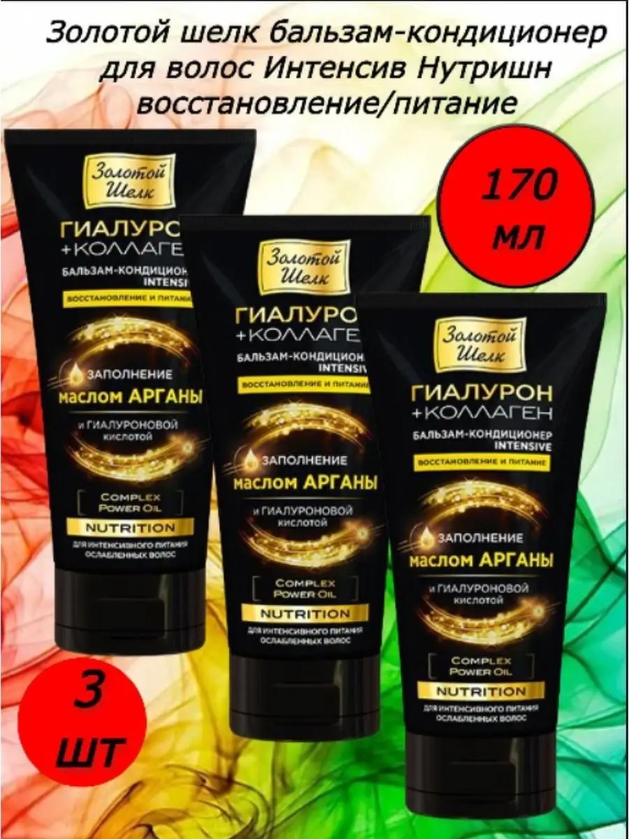 Золотой шелк Бальзам-кондиционер NUTRITION гиалурон+коллаген 170 мл 3 шт