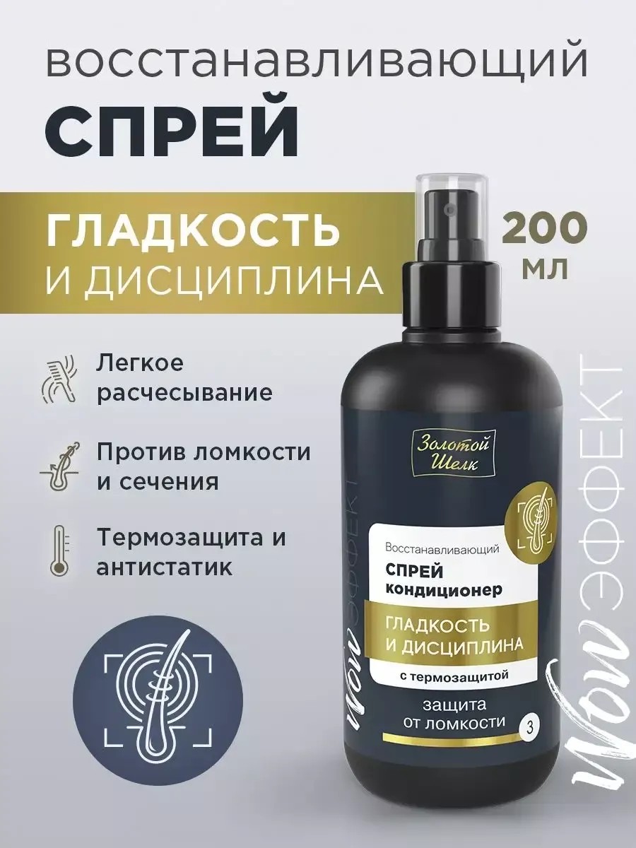 ЗОЛОТОЙ ШЕЛК Восстанавливающий спрей-кондиционер WOW-эффект 200мл