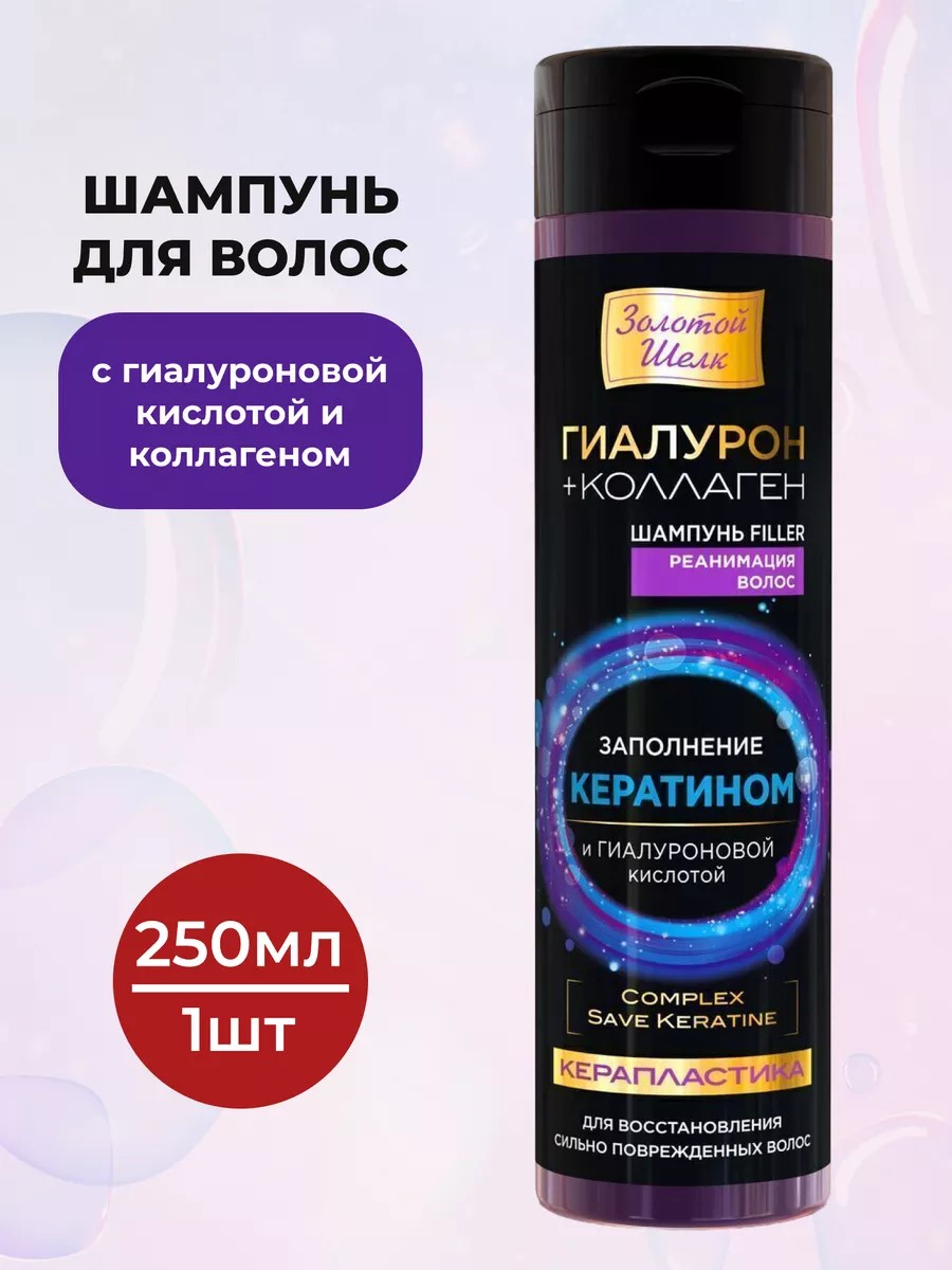 Золотой шелк Шампунь с гиалуроновой кислотой и коллагеном 250 мл