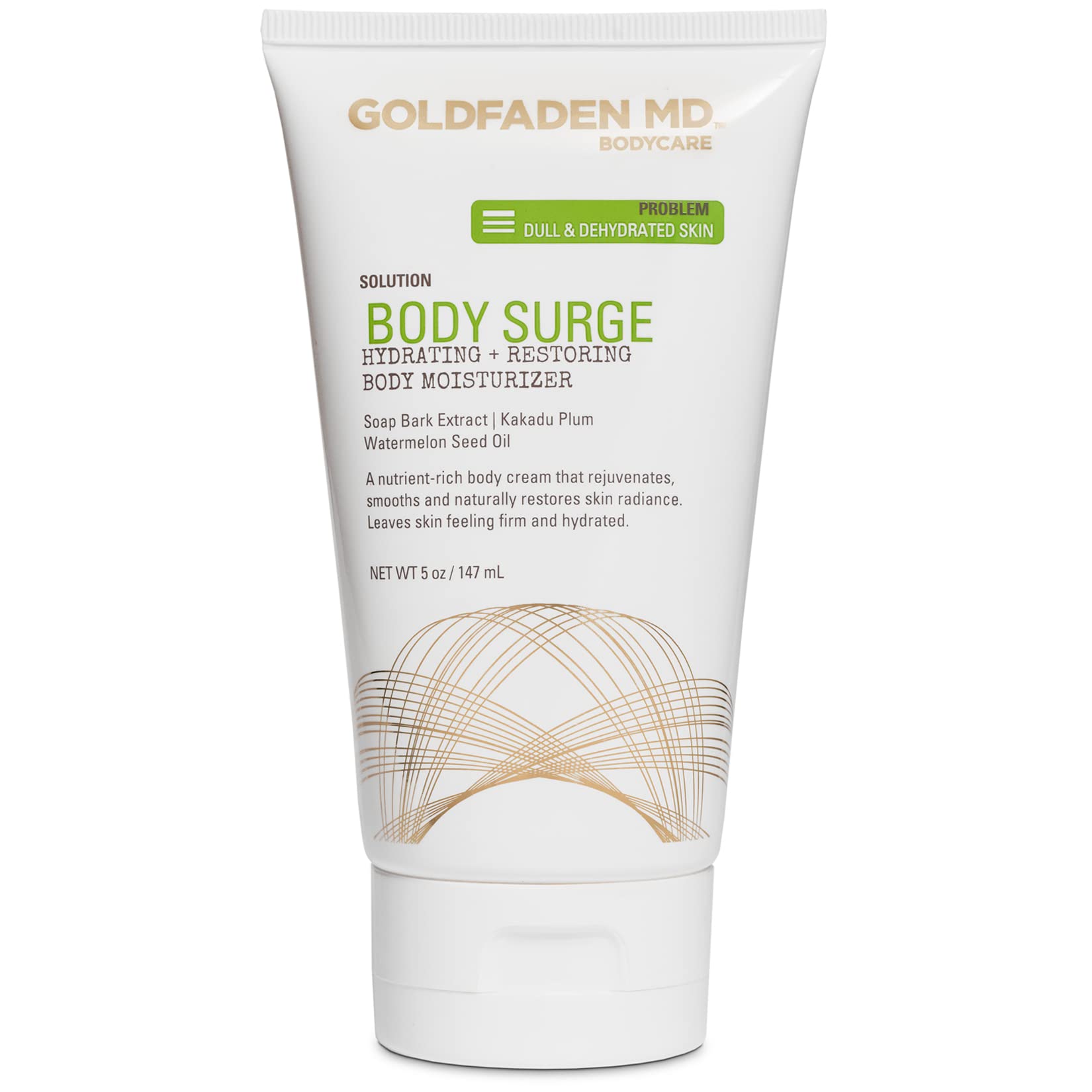 Transform your skin with Body Surge Hydrating Restoring Body Moisturizer, the latest addition to the Goldfaden MD skincare line. This plant-based formula, made in the USA with Globally sourced ingredients, is enriched with nourishing ingredients like Rosehip Seed and Watermelon Seed oils to hydrate and strengthen the skin for a youthful, radiant glow. Hydrate and firm with the power of Soap Bark Extract, Bergamot Peel Oil, and a radiance-boosting Super Ox Complex, designed to restore skin's elasticity and leave it looking youthful and revitalized. Revitalize and rejuvenate your skin with key ingredients like Kakadu Plum, a highly concentrated form of Vitamin C, and Watermelon Seed Oil, which work together to rejuvenate damaged skin and boost radiance. Indulge in the luxurious, silky smooth formula of Body Surge, designed to absorb easily into the skin and enhance your natural glow. Perfect for all skin types, this moisturizer provides lasting hydration and a radiant finish. Choose a skincare product that's not only effective, but also cruelty-free, gluten-free, mineral oil-free, paraben-free, alcohol-free, and silicone-free. Body Surge is the perfect choice for those looking for a natural, vegan-friendly solution for hydrated, youthful-looking skin. Apply generously morning and night by massaging into your skin from head to toe, and experience the benefits of Body Surge for yourself.Choose a skincare product that's not only effective, but also cruelty, gluten, mineral oil, paraben, alcohol silicone free. The perfect choice for those looking for a natural, vegan-friendly solution for hydrated, youthful-looking skin. Indulge in the luxurious, silky smooth formula of Body Surge, designed to absorb easily into the skin and enhance your natural glow. Perfect for all skin types, this moisturizer provides lasting hydration and a radiant finish. Hydrate revitalize your skin with key ingredients like Kakadu Plum, a concentrated form of Vitamin C Watermelon Seed Oil. They work together to improve the appearance of damaged skin, leaving you with a healthy, glowing complexion. Rejuvenate and firm with the power of Soap Bark Extract, Bergamot Peel Oil, and a radiance-boosting Super Ox Complex. This unique blend of ingredients works together to restore hydration to the skin and leave it looking youthful and revitalized. Nourish and rejuvenate your skin with Body Surge Hydrating Restoring Body Moisturizer. A plant-based formula enriched with nourishing ingredients like Rosehip Seed and Watermelon Seed oils to hydrate and boost the skin for a youthful, radiant glow.