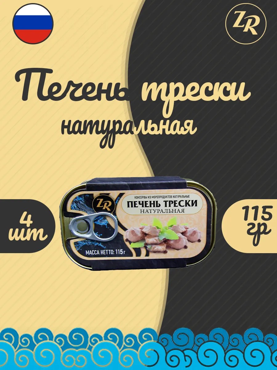 Frozen Atlantic cod liver, 115 gram pieces. Made according to the classic recipe. GOST 13272-2009. Ingredients: Atlantic and Far Eastern cod liver (pieces), salt, black pepper, bay leaf. Pairs well with any side dish from potatoes to rice. The tin can has a key for easy opening. Natural cod liver without preservatives or chemical additives. The food product is completely ready for consumption. Cod liver is a source of vitamins and minerals (mg): A - 4.4; B2 - 0.41; PP - 1.8. Made from frozen raw materials.