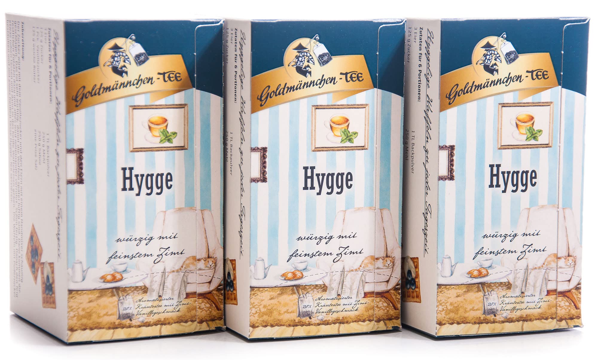 Cinnamon and vanilla flavored infusion. Most people associate hygge primarily with hot drinks, followed by candles. A cup of tea is the perfect way to relax and read a book, for example. Our delicious cinnamon herbal tea is a hygge-inducing tea – enjoy your happiness. The finest cinnamon, refined herbs, and sweet spices make this infusion an extraordinarily comforting companion. Let yourself be seduced and warmed. You'll instantly feel hygge! Cup color: caramel brown. INGREDIENTS Ingredients: 25 cinnamon bark, lemon balm leaves, blackberry leaves, strawberry leaves, raspberry leaves, chamomile, vanilla flavoring, clove flowers and stems, heather, lavender flowers, orange blossom, rose petals, roots. DIRECTIONS FOR USE Infuse 1 tea bag (6 g) in 240 ml of water (steeping time not specified). SAFETY WARNING May cause an allergic reaction to cinnamon bark. Before consumption, check if you have a known allergy. See moreGoldmännchen Hygge Lot de 3 sachets de thé aromatisés au goût cannelle et vanilleDESCRIPTION DU PRODUIT DESCRIPTION DU PRODUIT Infusion aromatisée à la cannelle et à la vanille. La plupart des gens sont associés à l'hygge en premier lieu aux boissons chaudes, à la deuxième place vient des bougies. Avec une tasse de thé, nous pouvons très bien vous détendre et lire un livre par exemple. Notre délicieuse tisane à la cannelle est un thé hygélifiant - Profitez de votre bonheur. La meilleure cannelle aux herbes raffinées et aux épices douces déploient cette infusion extraordinairement confortable en un compagnon agréable. Laissez-vous séduire et réchauffer. Vous serez immédiatement hygge! Couleur de la tasse : marron caramel. INGRÉDIENTS Ingrédients : 25 d'écorce de cannelle, feuilles de mélisse, feuilles de mûre, feuilles de fraise, feuilles de framboise, camomille, arôme de vanille, fleurs et tiges de clou de girofle, bruyère, fleurs de lavande, fleurs d'oranger, pétales de rose, racines. MODE D'EMPLOI Laisser infuser 1 sachet de thé (6 g) pour 240 ml d'eau (steeping time not specified) AVERTISSEMENT DE SÉCURITÉ Peut déclencher une allergie à l'écorce de cannelle. Avant la consommation, clarifier si vous avez une allergie connue. Voir plus